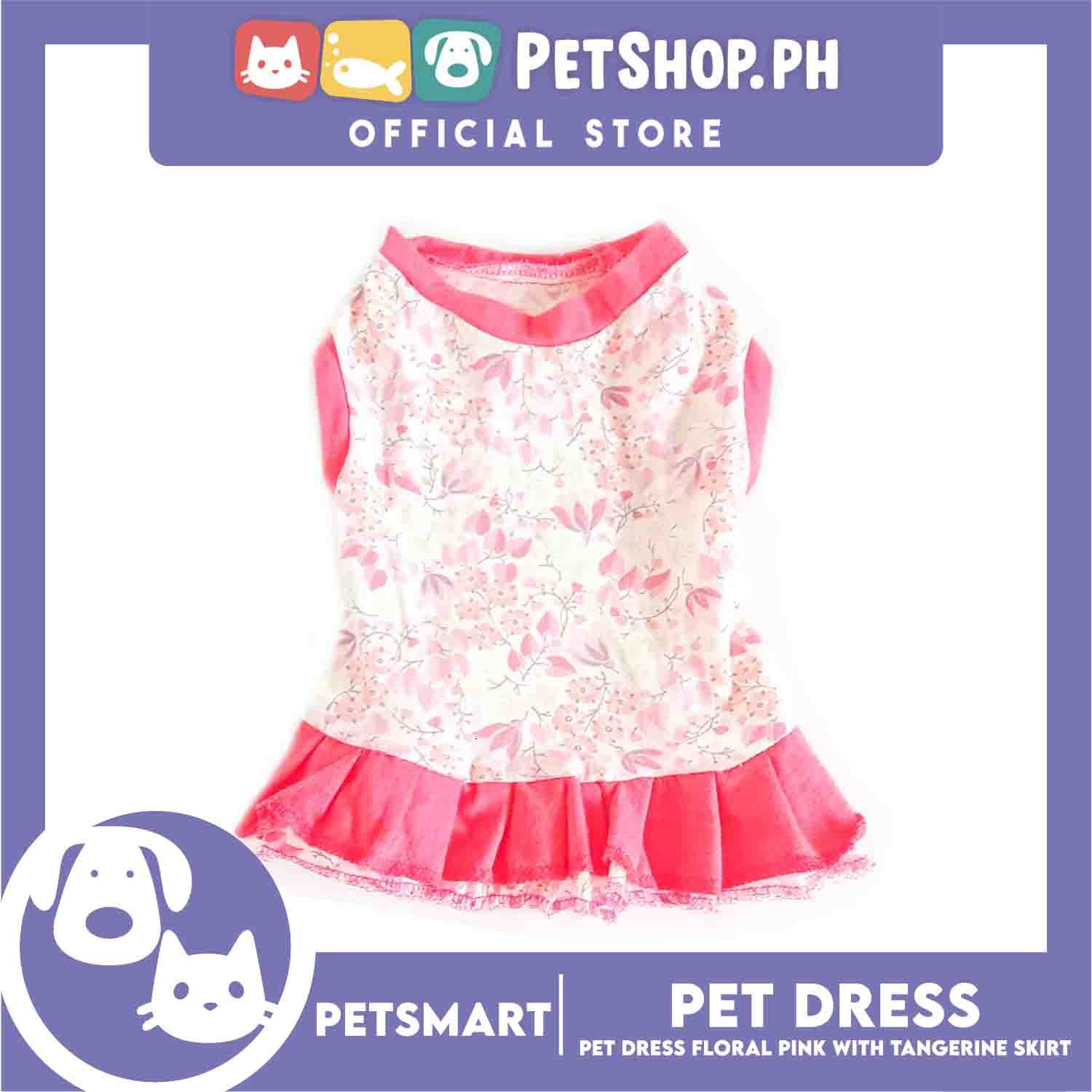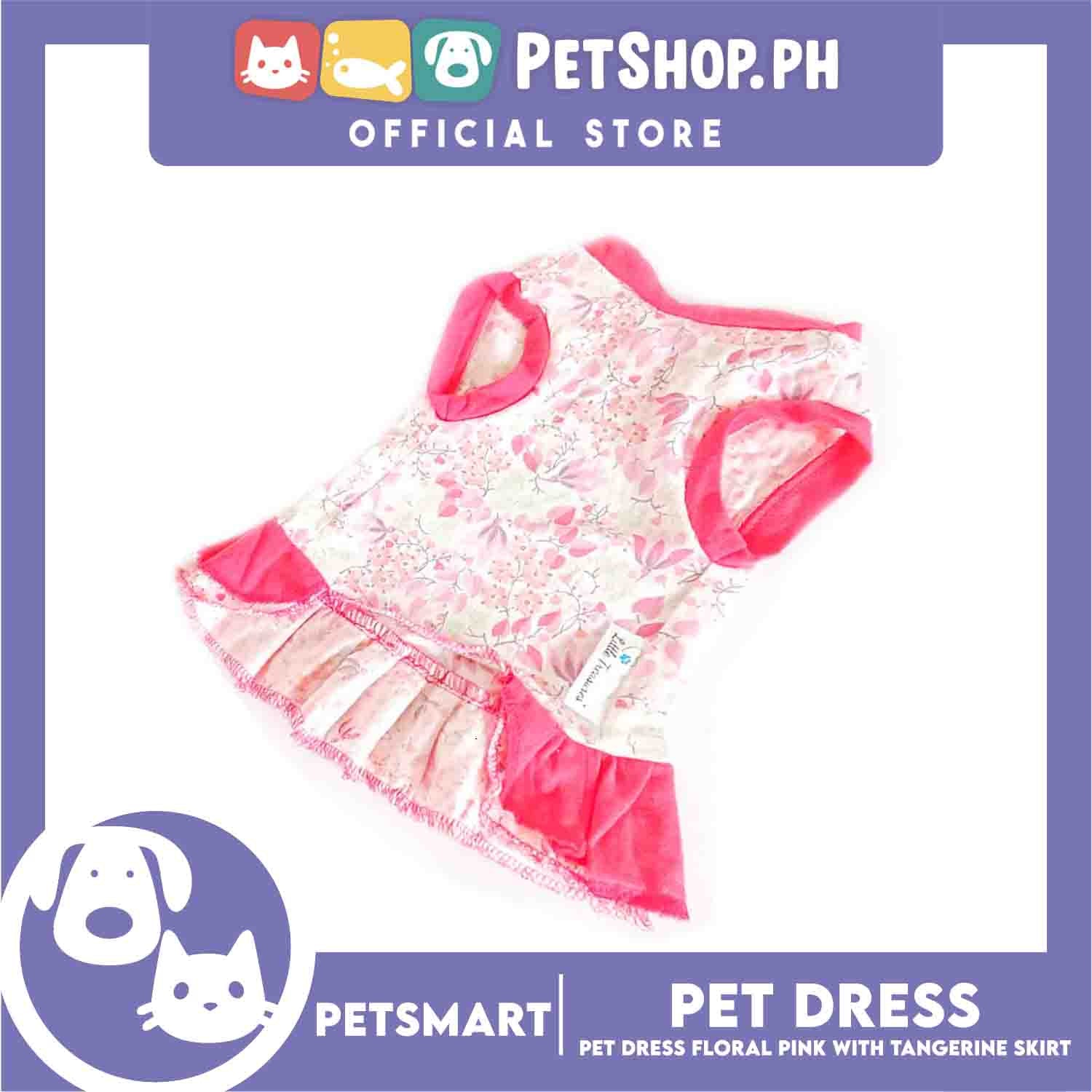 Pet Dress Clothes, Floral Pink With Tangerine Skirt Dress DG-CTN134M (Medium)