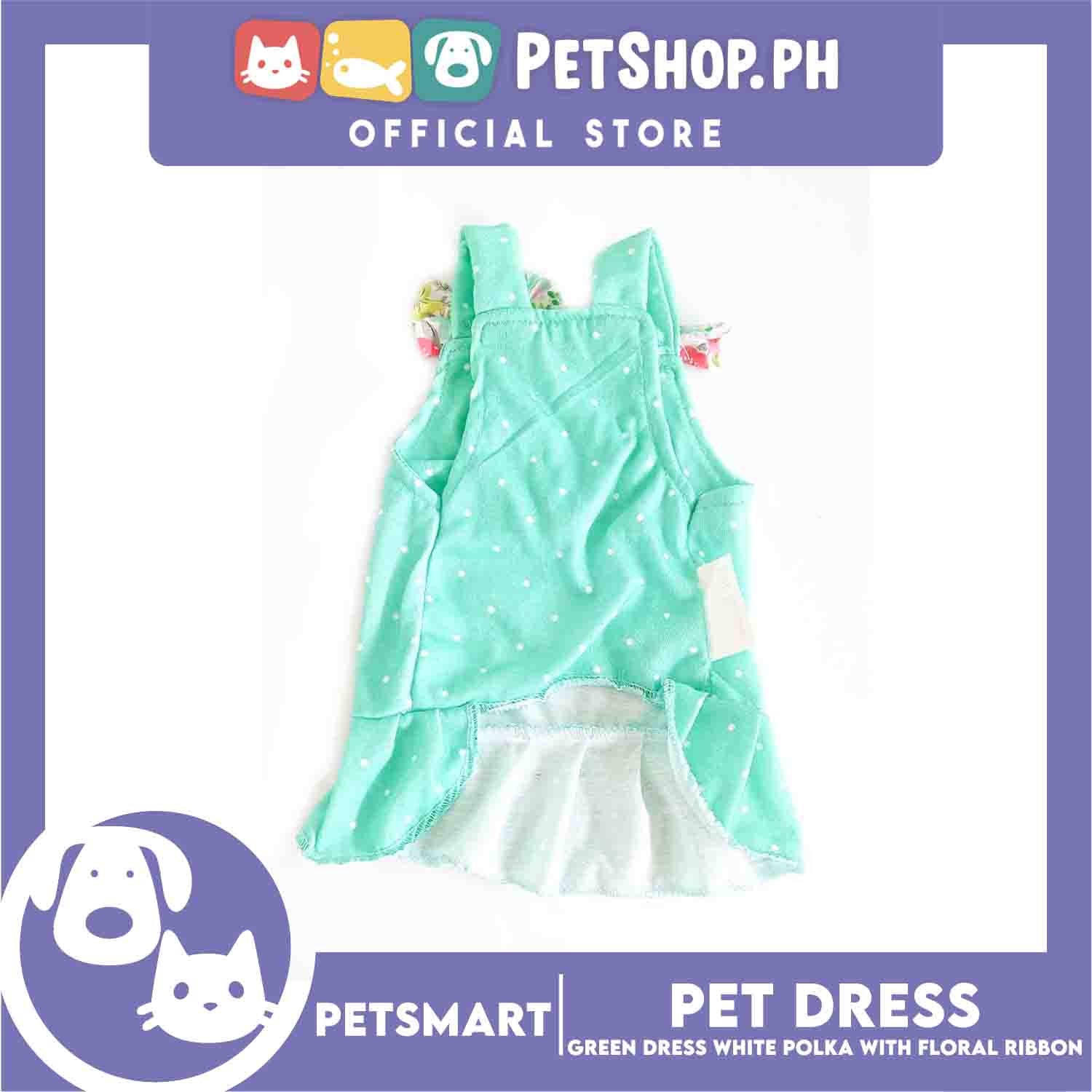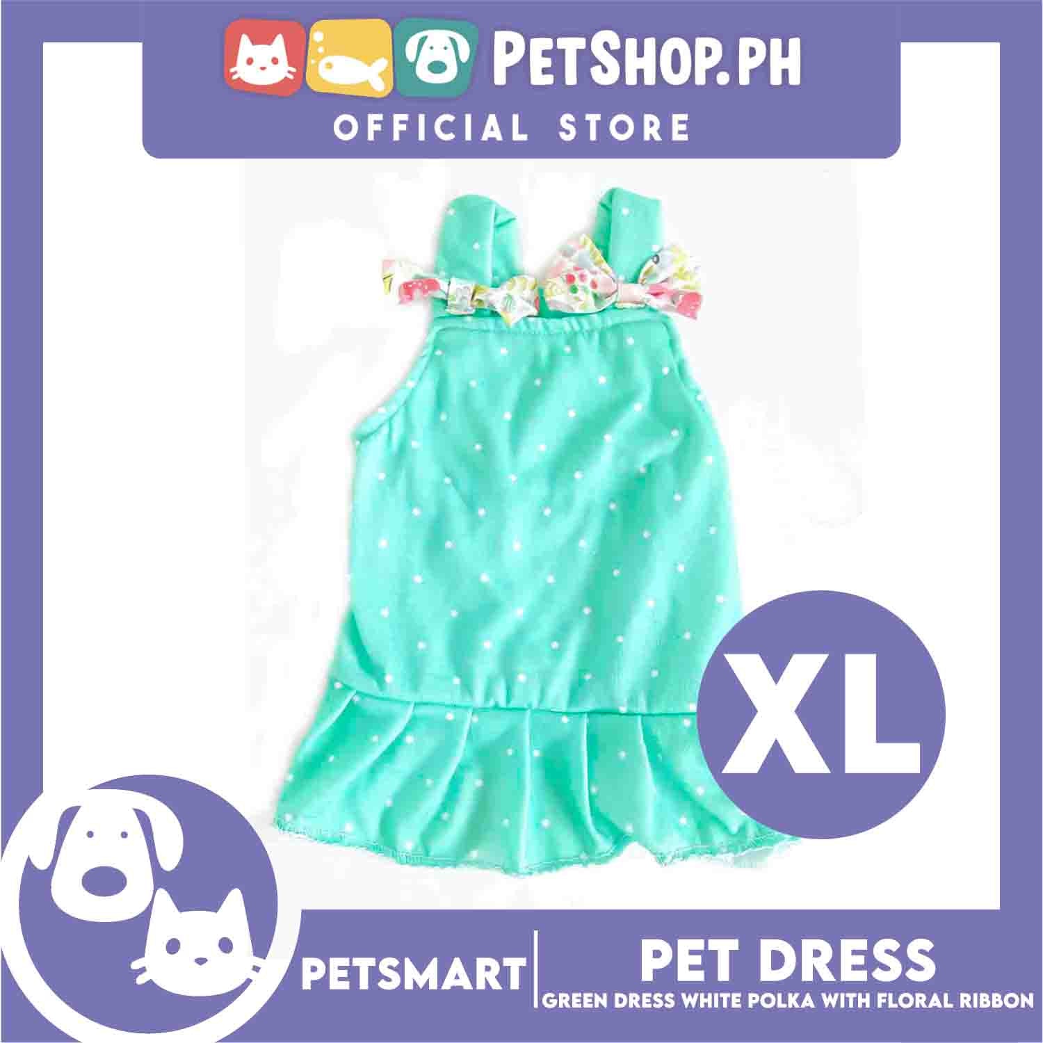 Pet Dress Clothes, Green White Polka With White Floral Ribbon (XL)