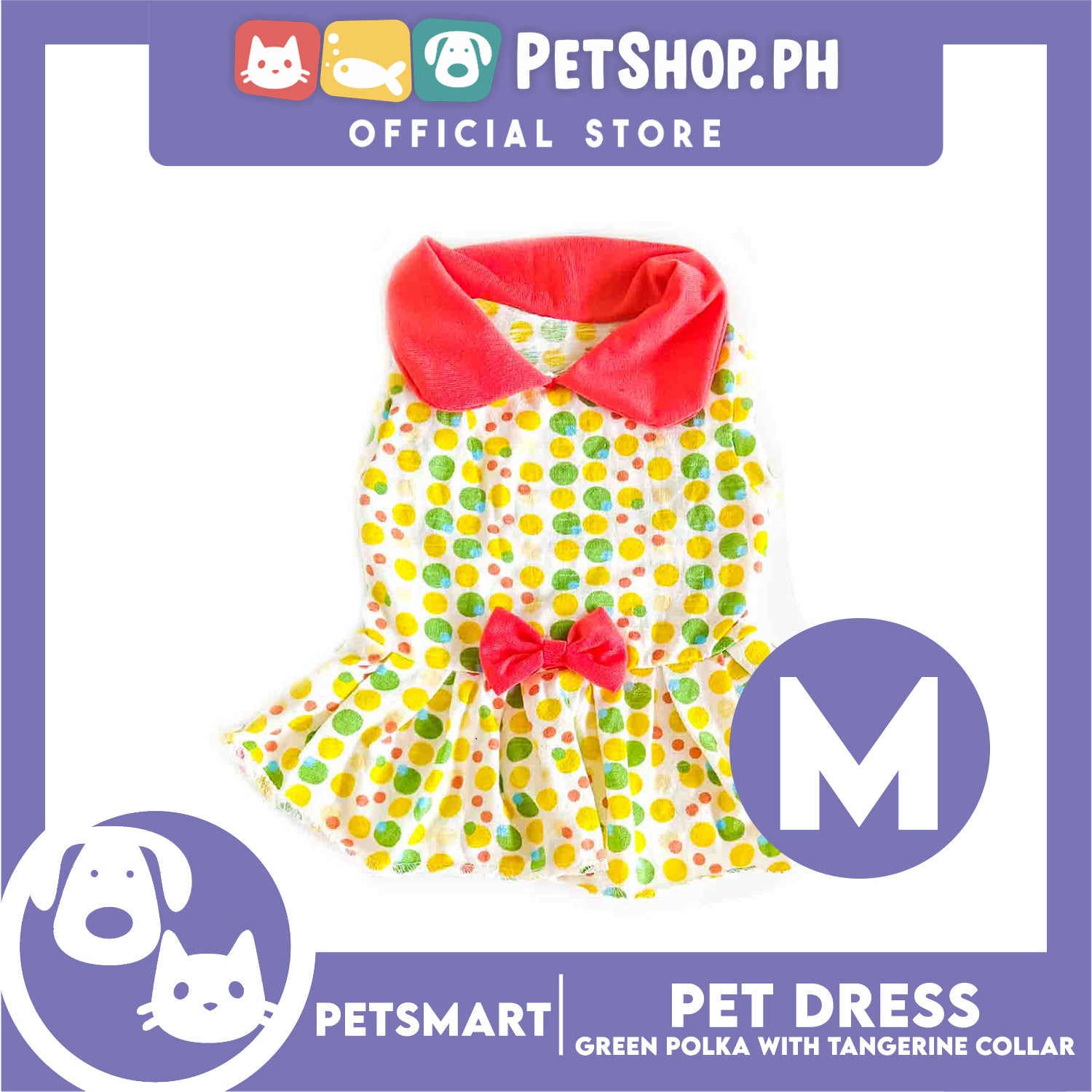 Pet Dress Clothes, Green Polka With Tangerine Collar (Medium)