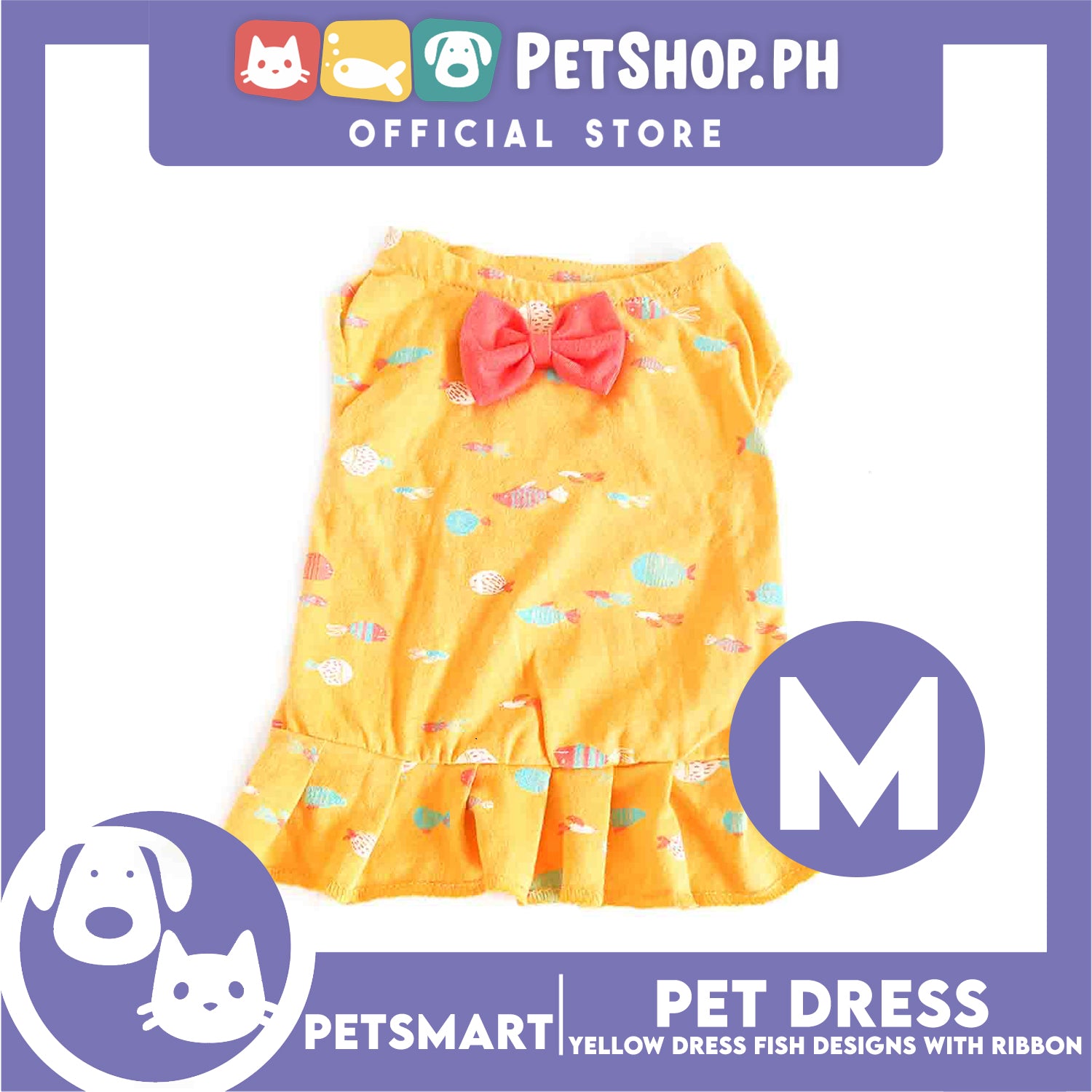Pet Dress Clothes, Yellow Color Fish Design With Ribbon DG-CTN135M (Medium)