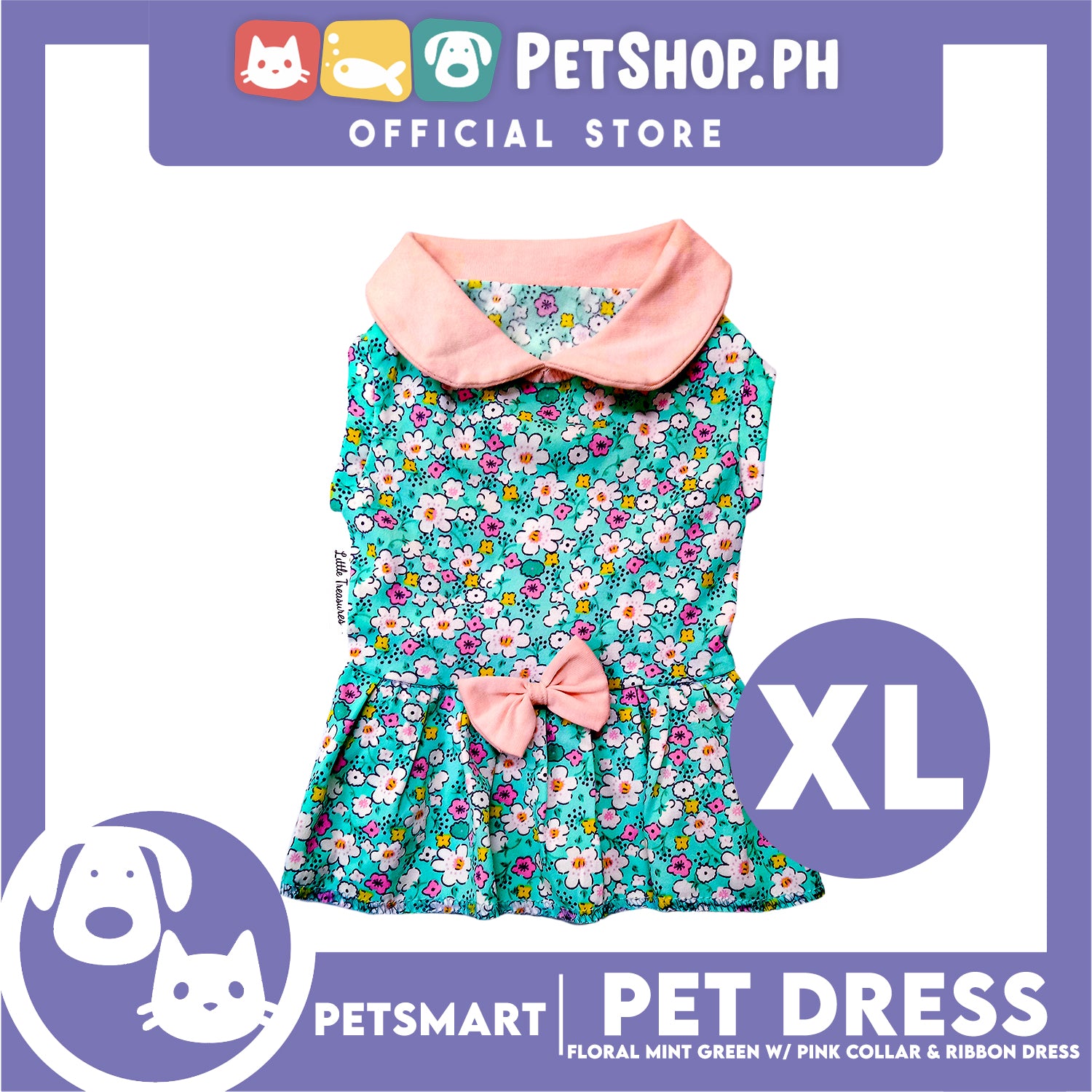 Pet Dress Floral Mint Green with Pink Collar and Ribbon Perfect Fit for Dogs and Cats (XL)