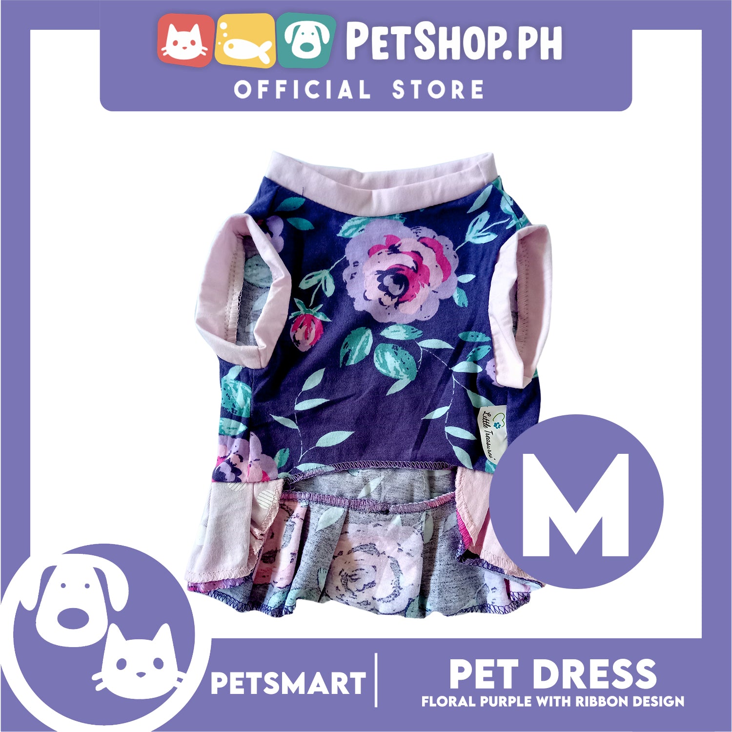 Pet Dress, Floral Purple with Ribbon Design DG-CTN159M (Medium) Perfect Fit For Dogs And Cats, Pet Clothes, Soft and Comfortable Pet Clothing