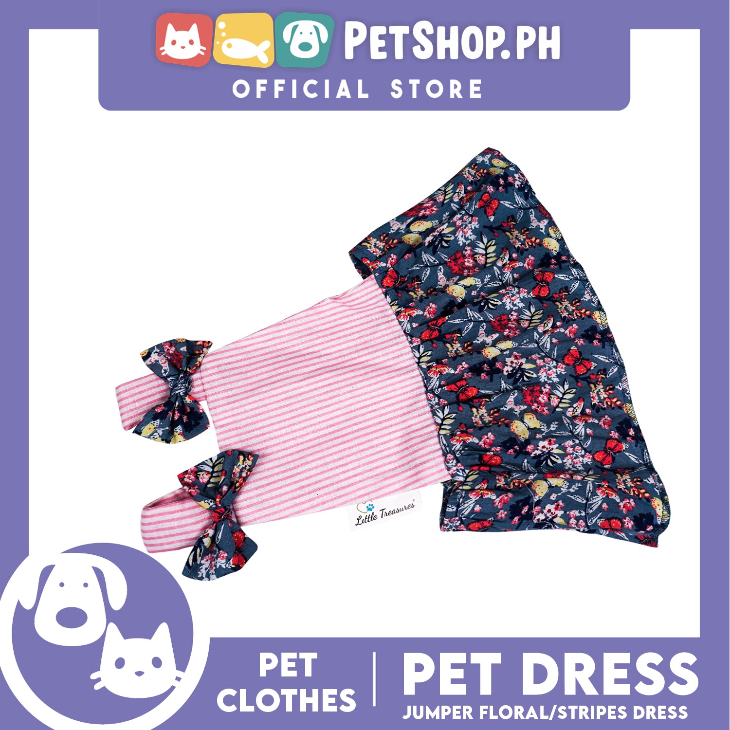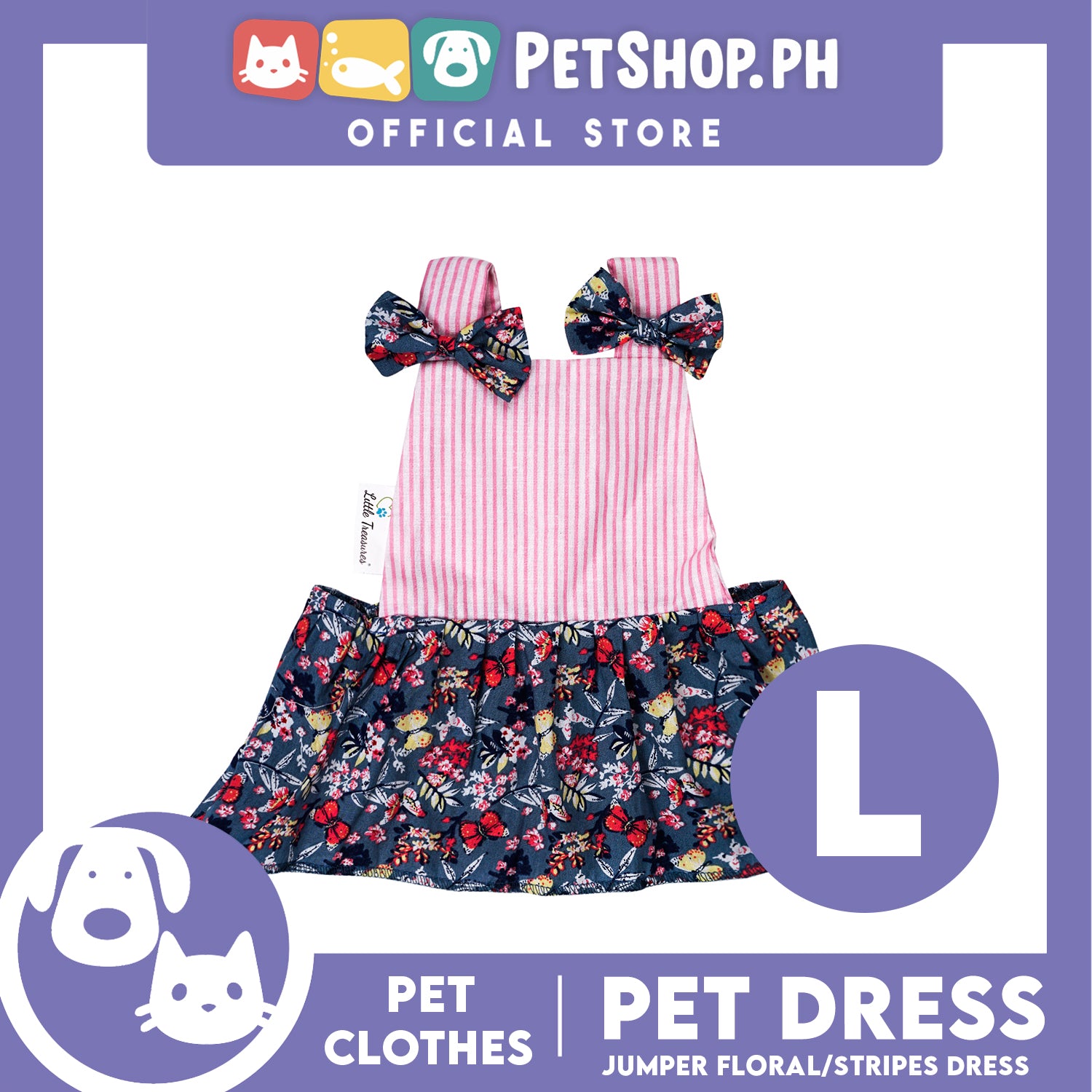Pet Dress Floral Stripes Jumper Dress Pet Clothes (Large) Perfect Fit for Dogs and Cats