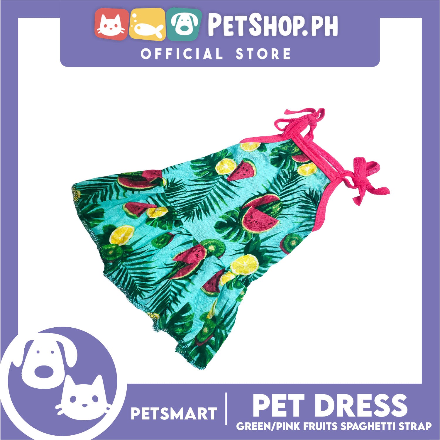 Pet Dress Fruits Design, Green Pink Color Spaghetti Strap Dress DG-CTN117L (Large) Perfect Fit For Dogs And Cats, Breathable Dress Clothes, Soft Lightweight Pet Clothing