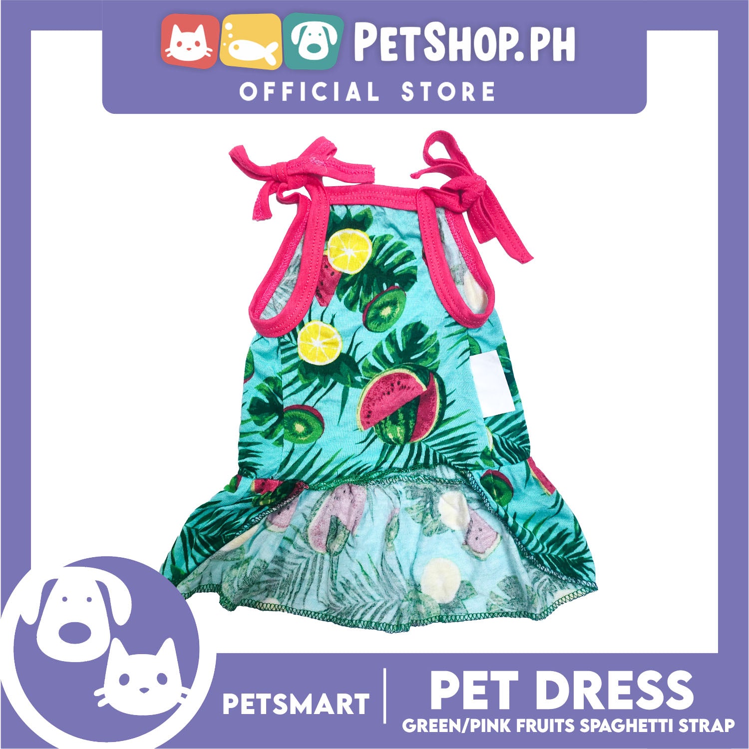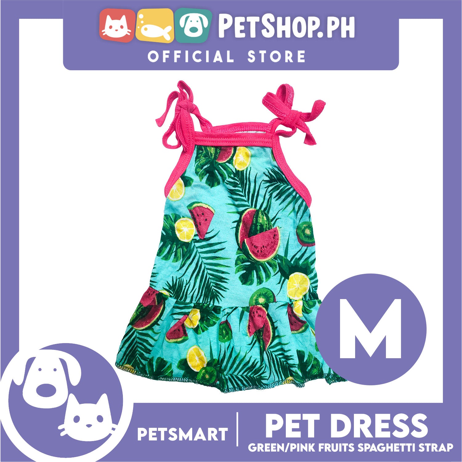 Pet Dress Fruits Design, Green Pink Color Spaghetti Strap Dress DG-CTN117M (Medium) Perfect Fit For Dogs And Cats, Breathable Dress Clothes, Soft Lightweight Pet Clothing