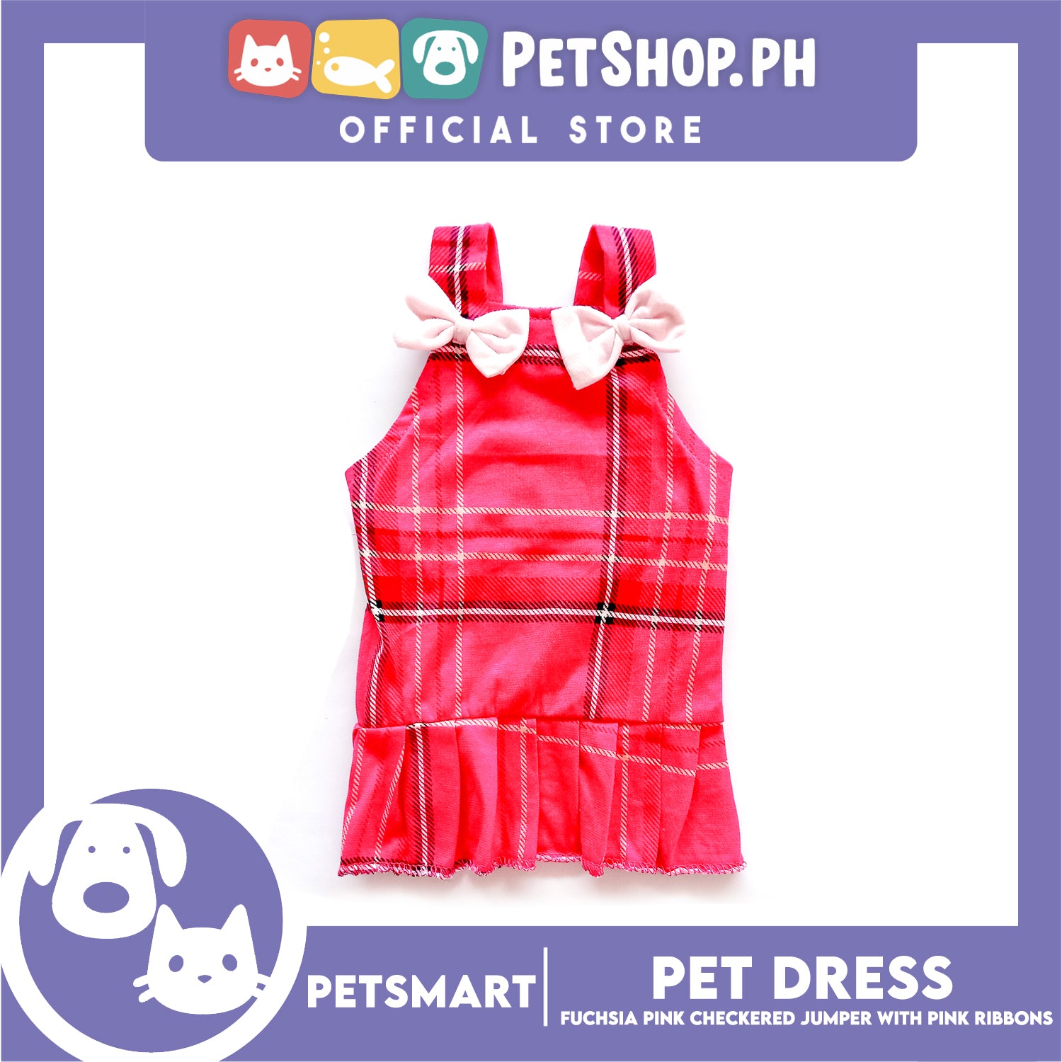 Pet Dress Fuchsia Pink Checkered Jumper with Ribbon Design DG-CTN142S (Small) Perfect Fit For Dogs And Cats