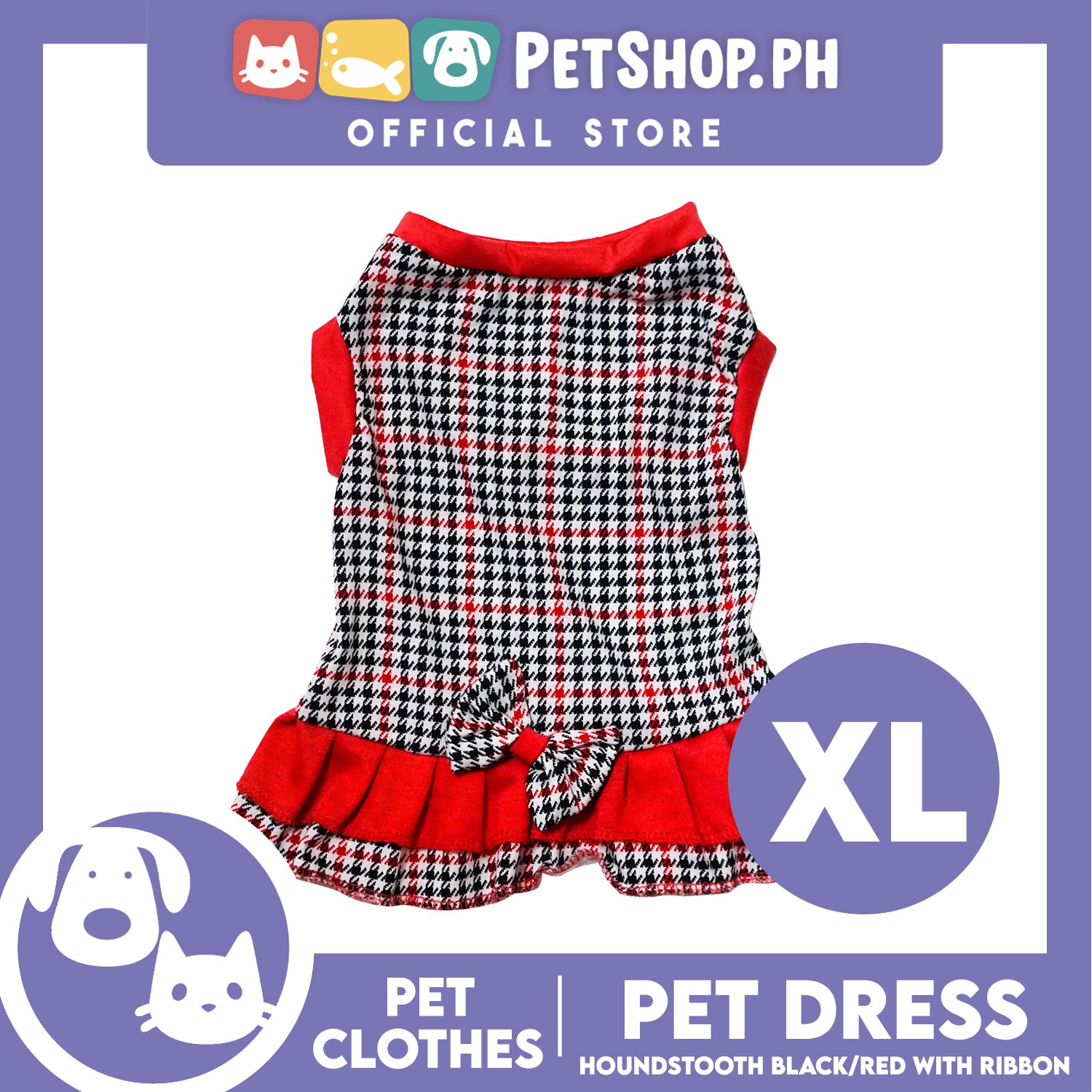 Pet Dress Houndstooth Black/Red with ribbon (Extra Large) Pet Dress Clothes Perfect for Dogs
