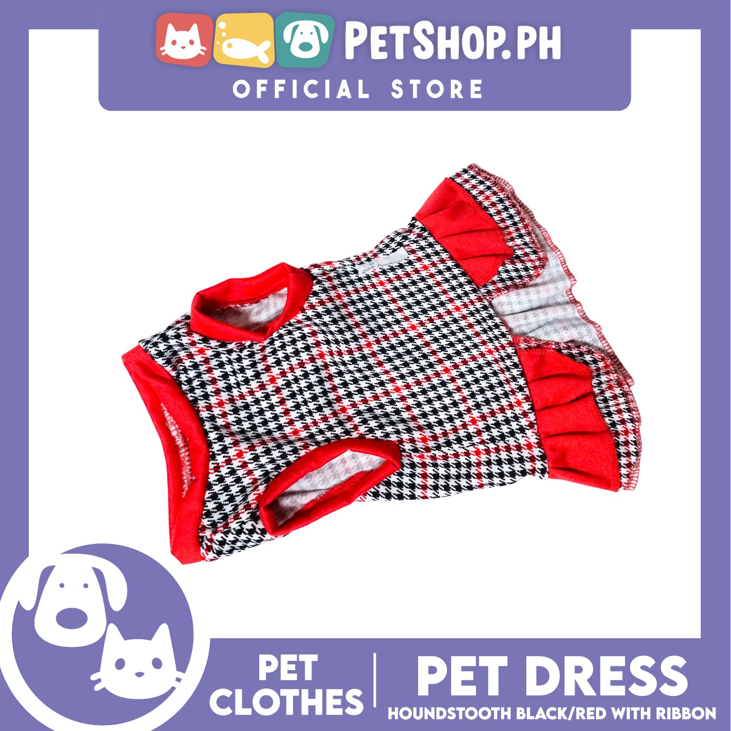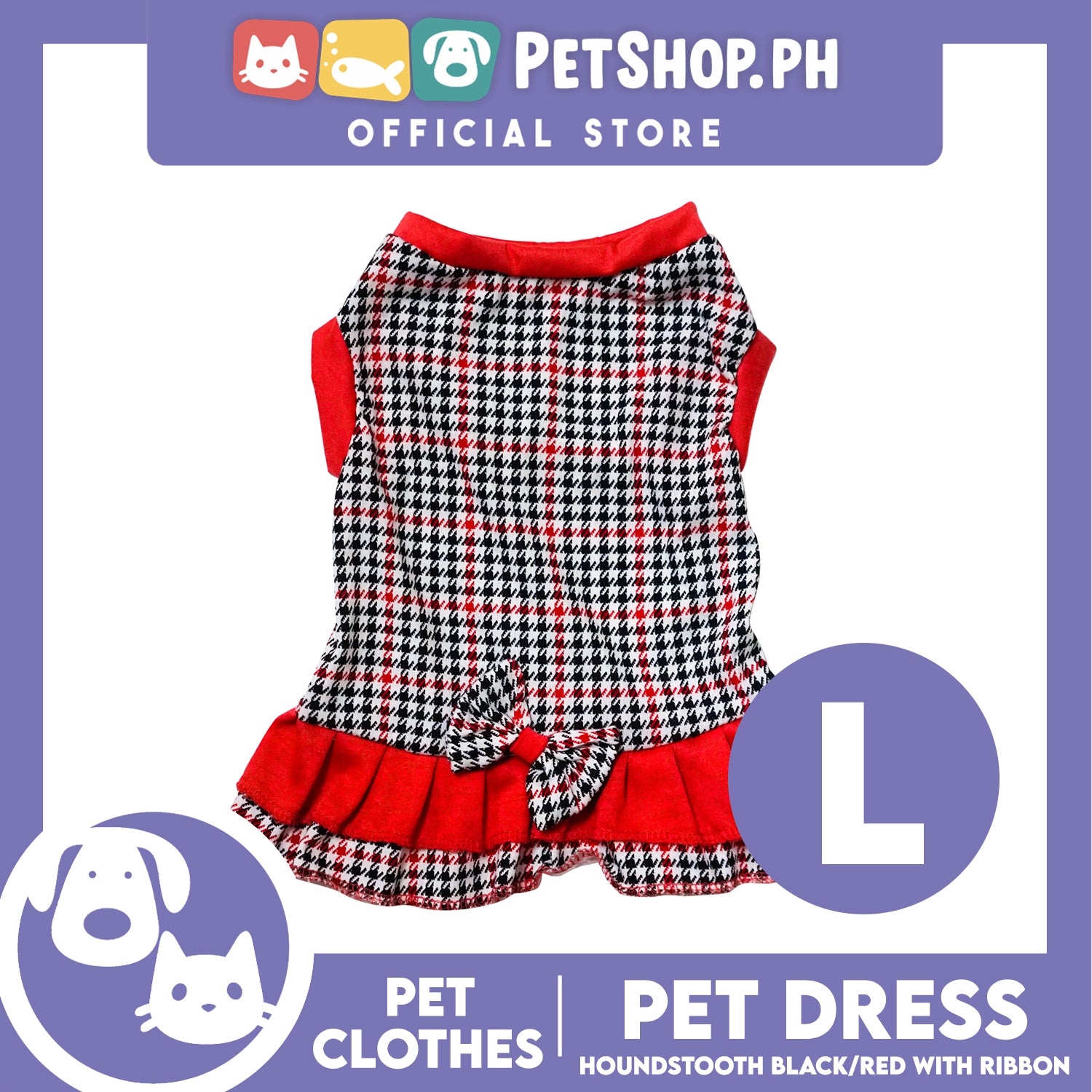 Pet Dress Houndstooth Black/Red with ribbon (Large) Pet Dress Clothes Perfect for Dogs