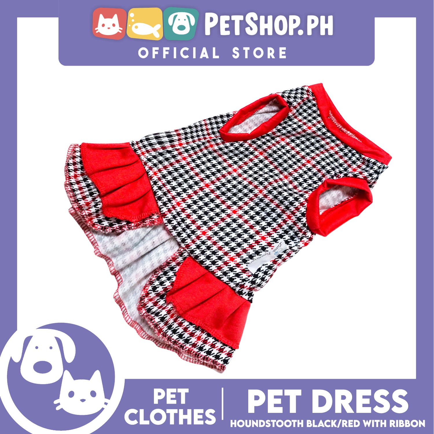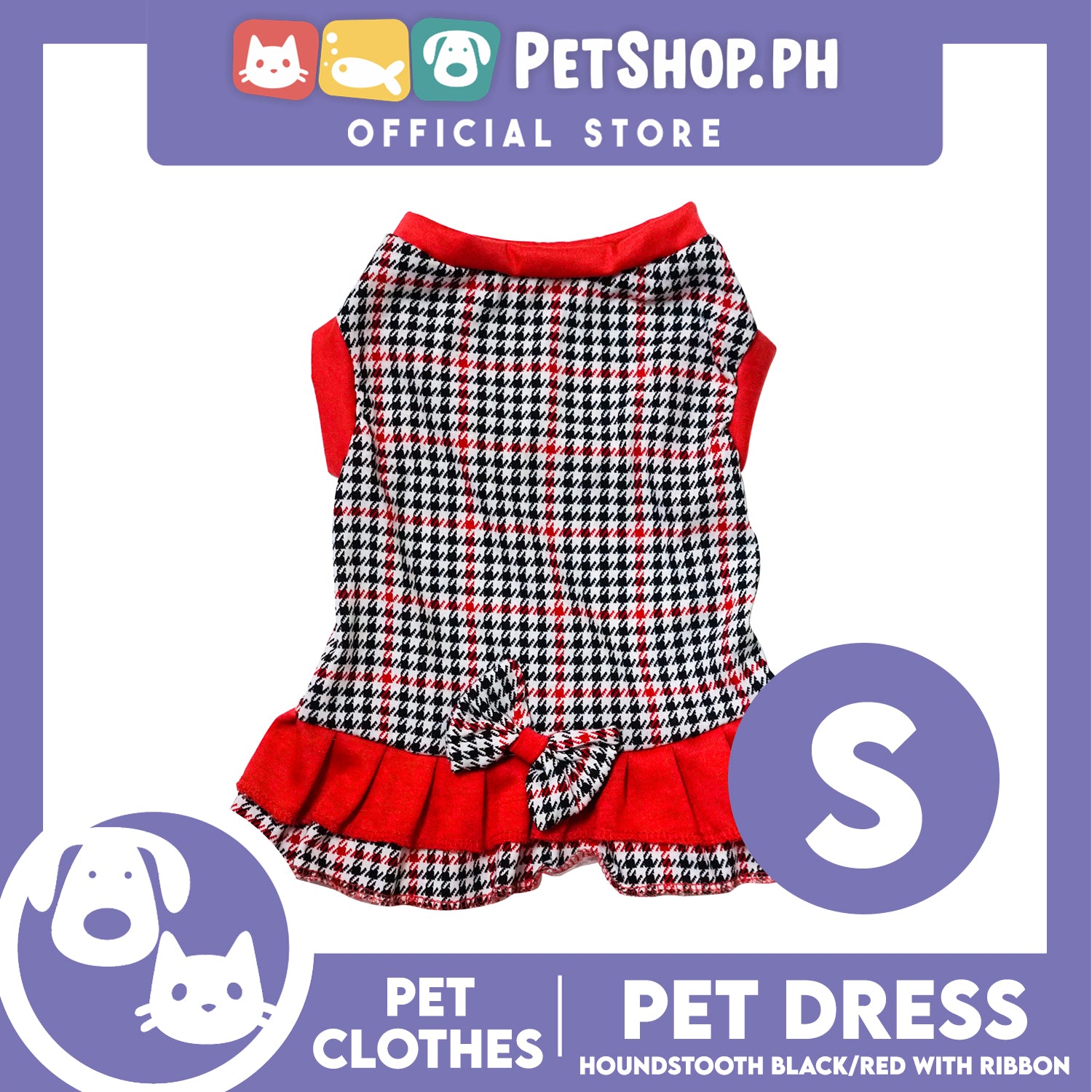 Pet Dress Houndstooth Black/Red with ribbon (Small) Pet Dress Clothes Perfect for Dogs