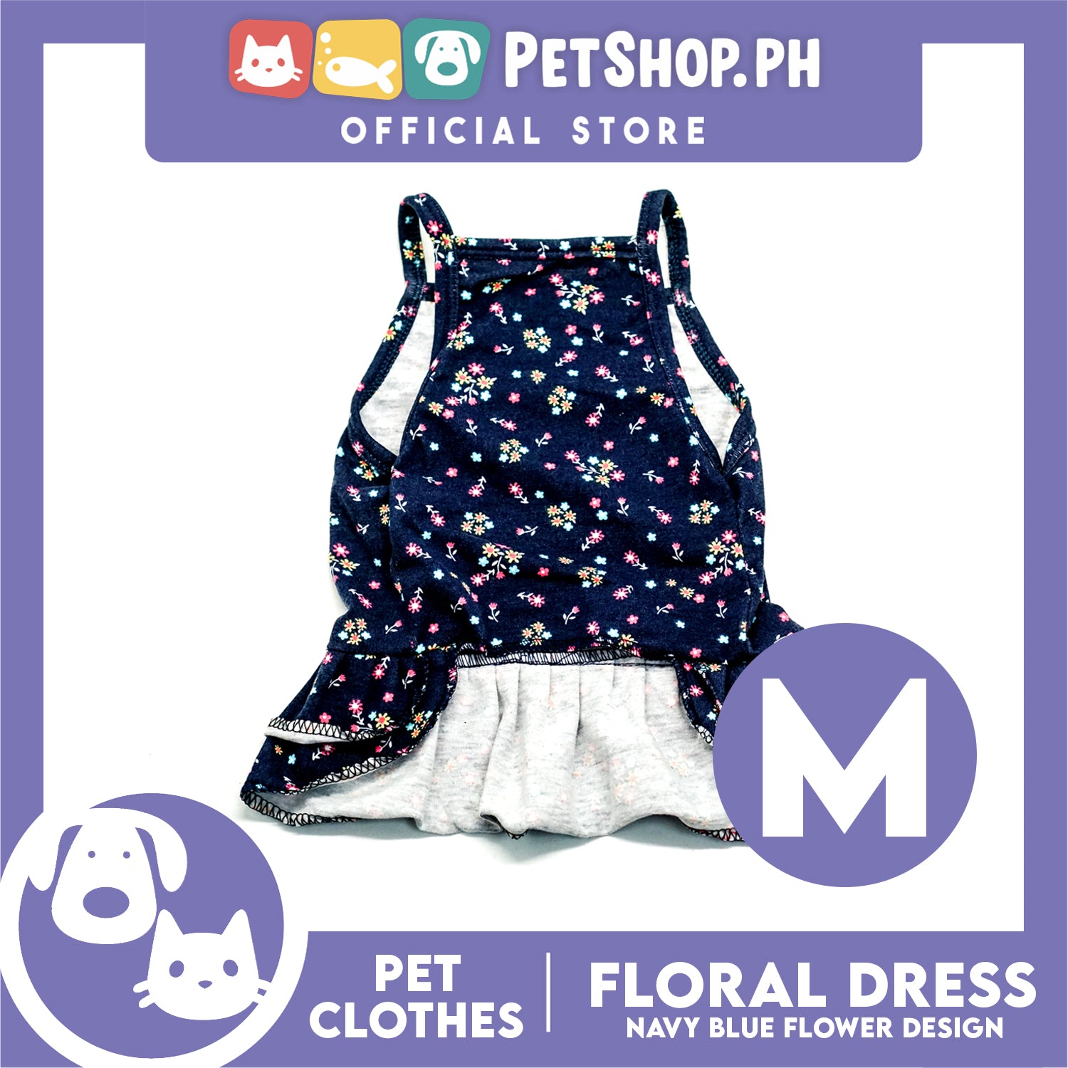 Pet Dress Navy Blue Floral Dress (Medium) Perfect Fit for Dogs and Cats