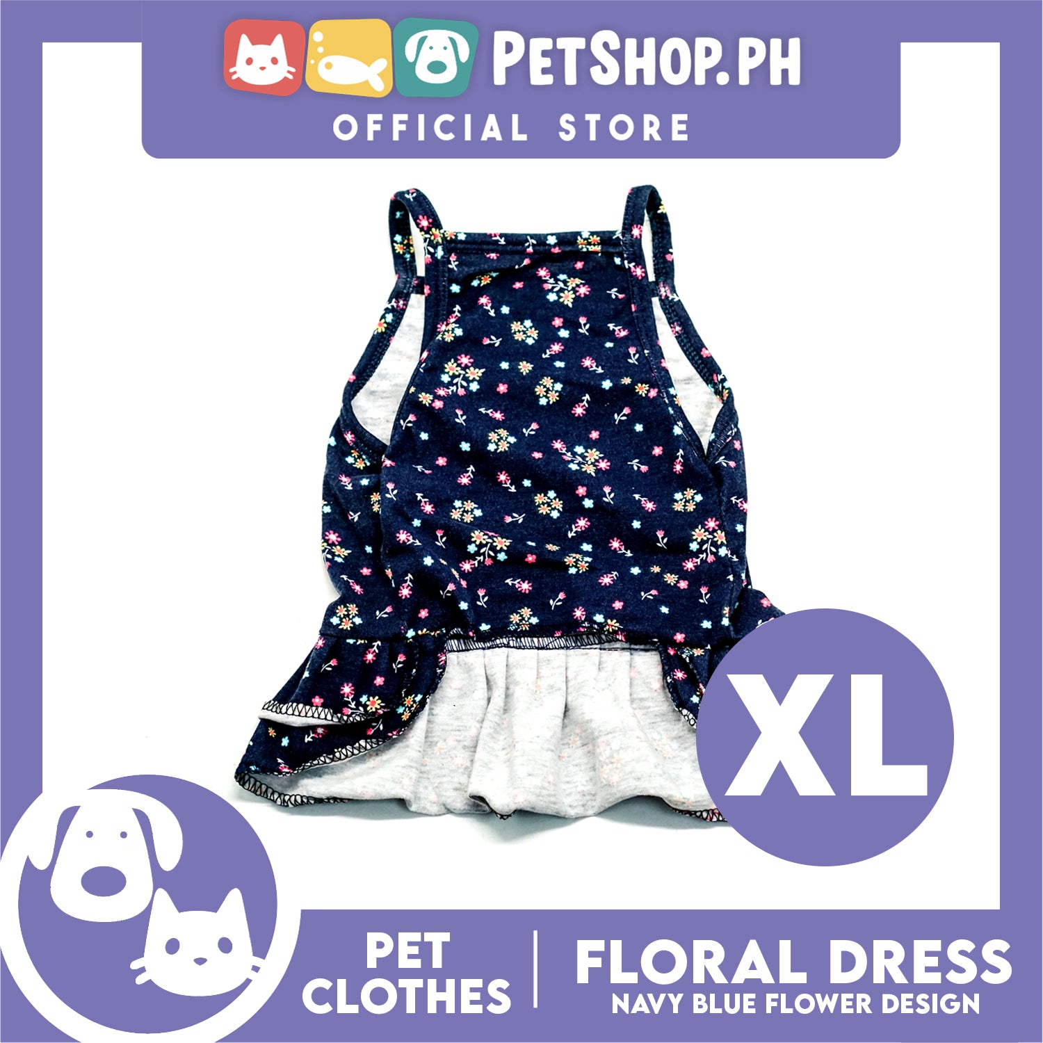 Pet Dress Navy Blue Floral Dreess (XL) Perfect Fit for Dogs and Cats