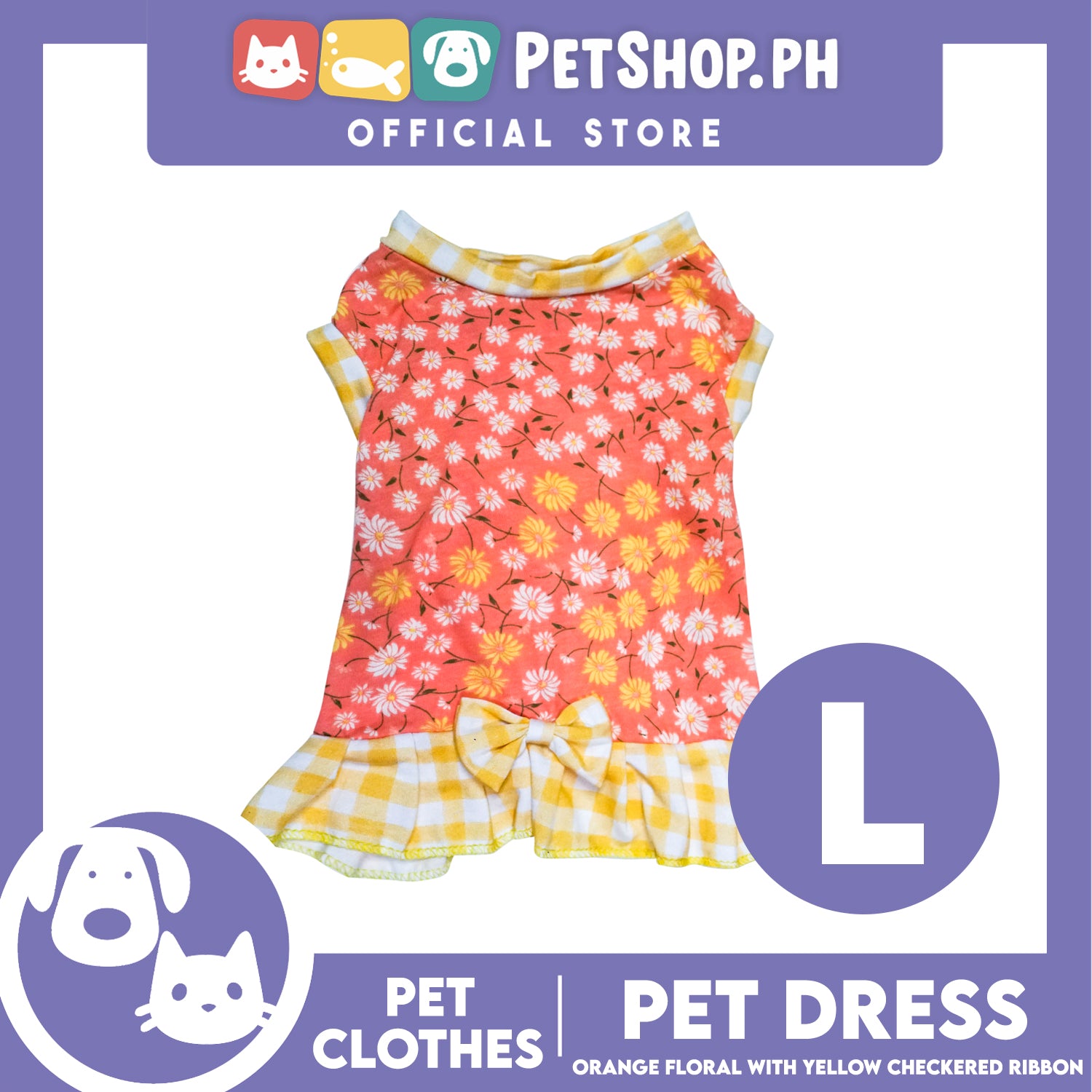 Pet Dress Orange Floral Yellow Checkered with Ribbon (Large) Pet Dress Clothes Perfect for Dogs