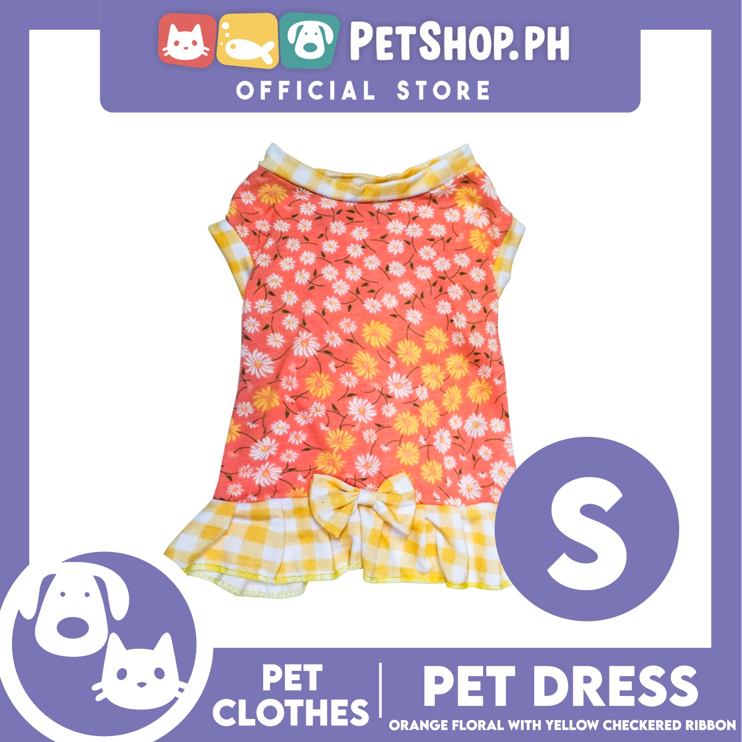 Pet Dress Orange Floral Yellow Checkered with Ribbon (Small) Pet Dress Clothes Perfect for Dogs