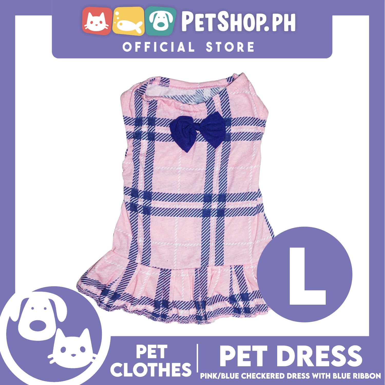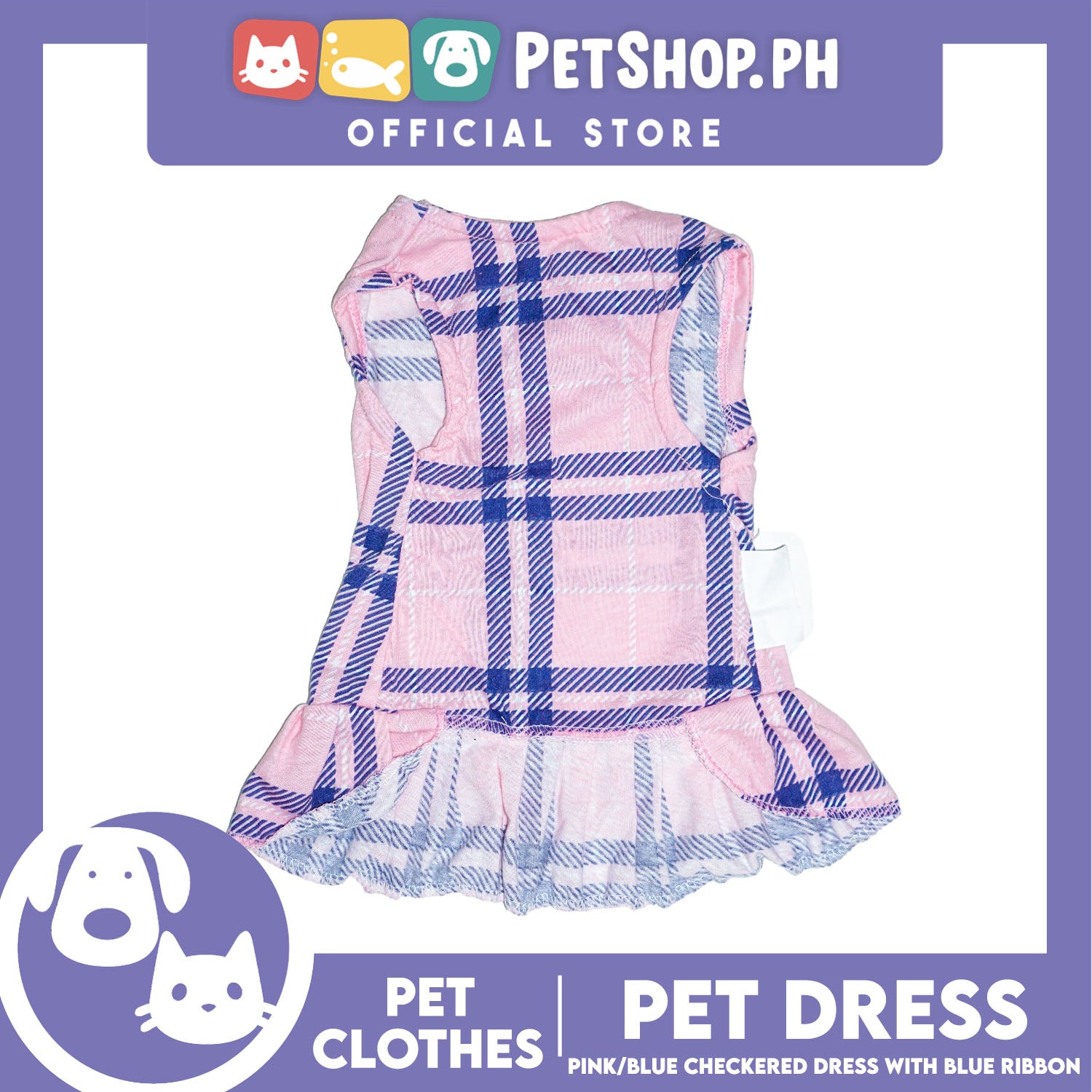 Pet Dress Pink/Blue Checkered Dress with Blue Ribbon (Large) Perfect Fit for Dogs and Cats