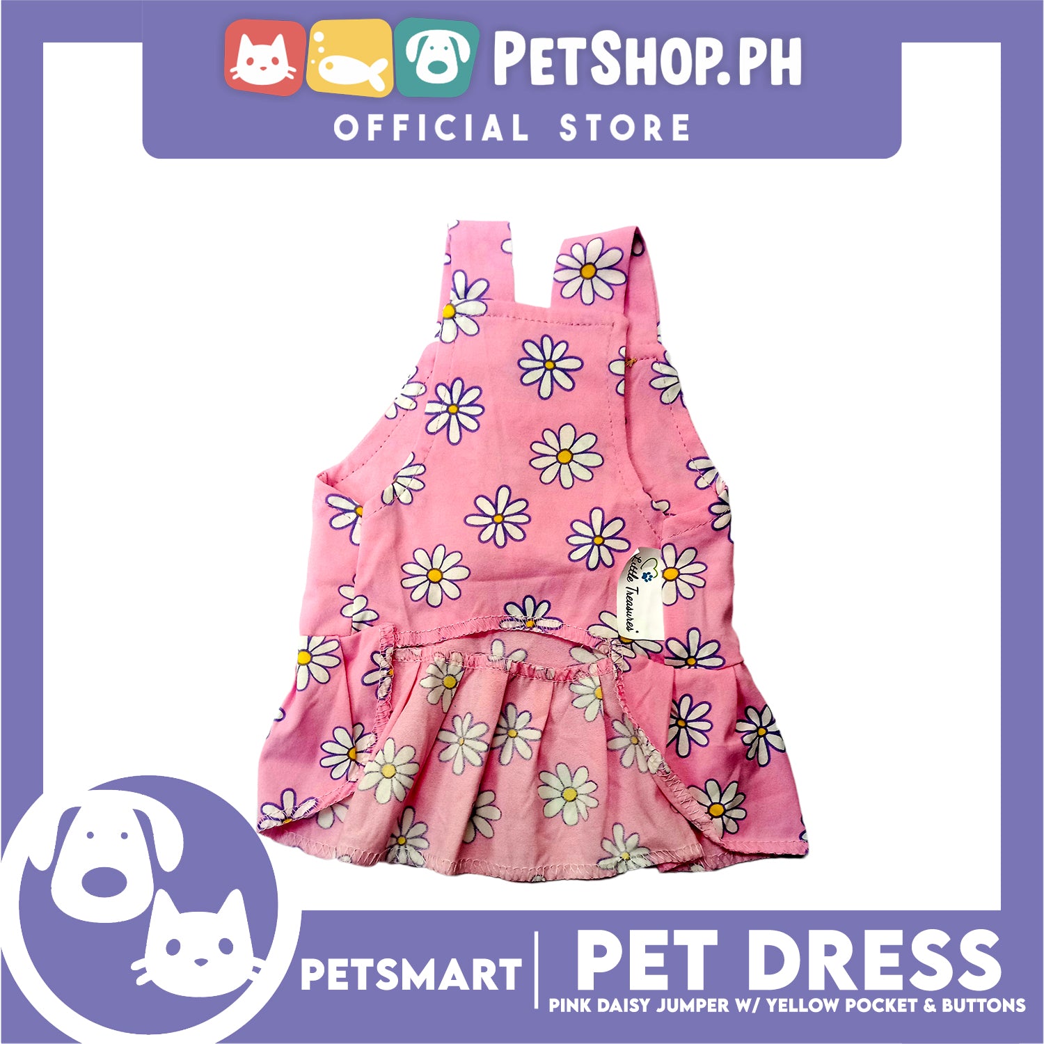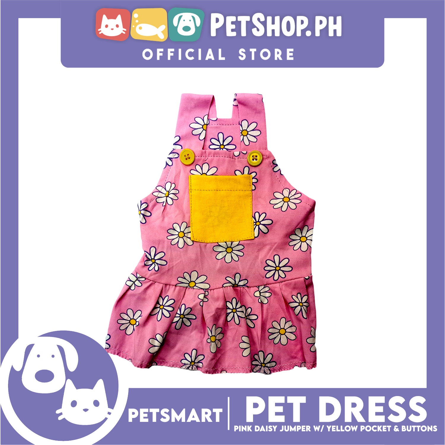 Pet Dress Pink Daisy Jumper with Yellow Pocket and Buttons Perfect Fit for Dogs and Cats (Medium)