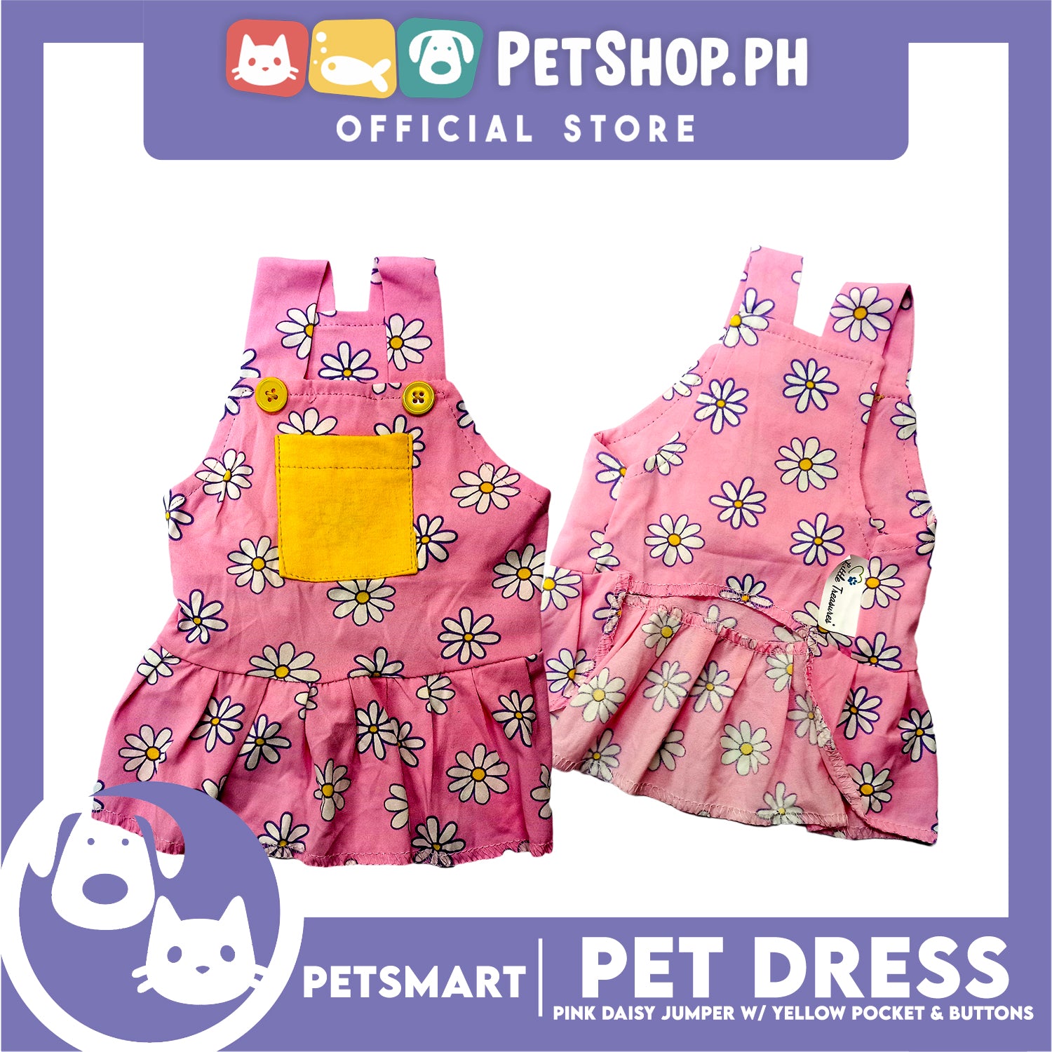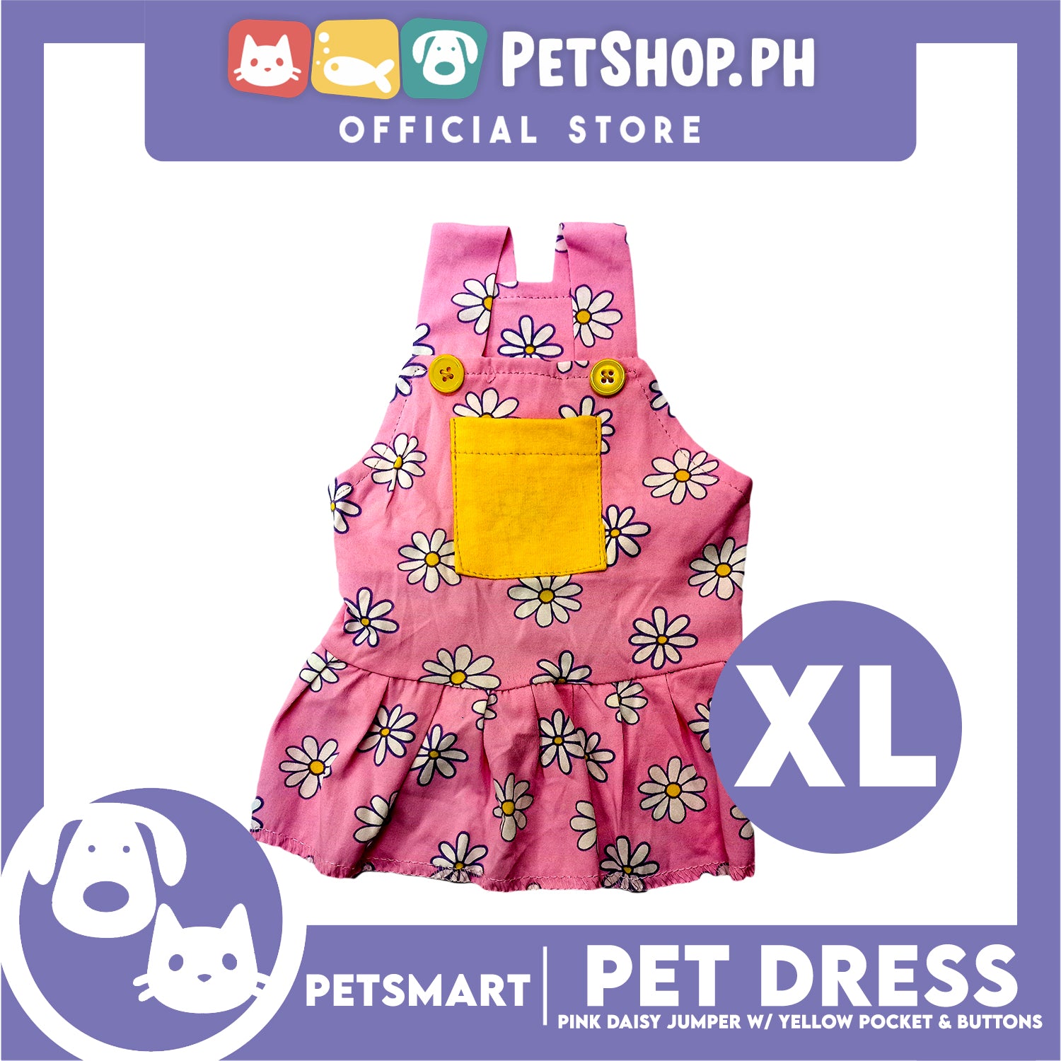 Pet Dress Pink Daisy Jumper with Yellow Pocket and Buttons Perfect Fit for Dogs and Cats (XL)