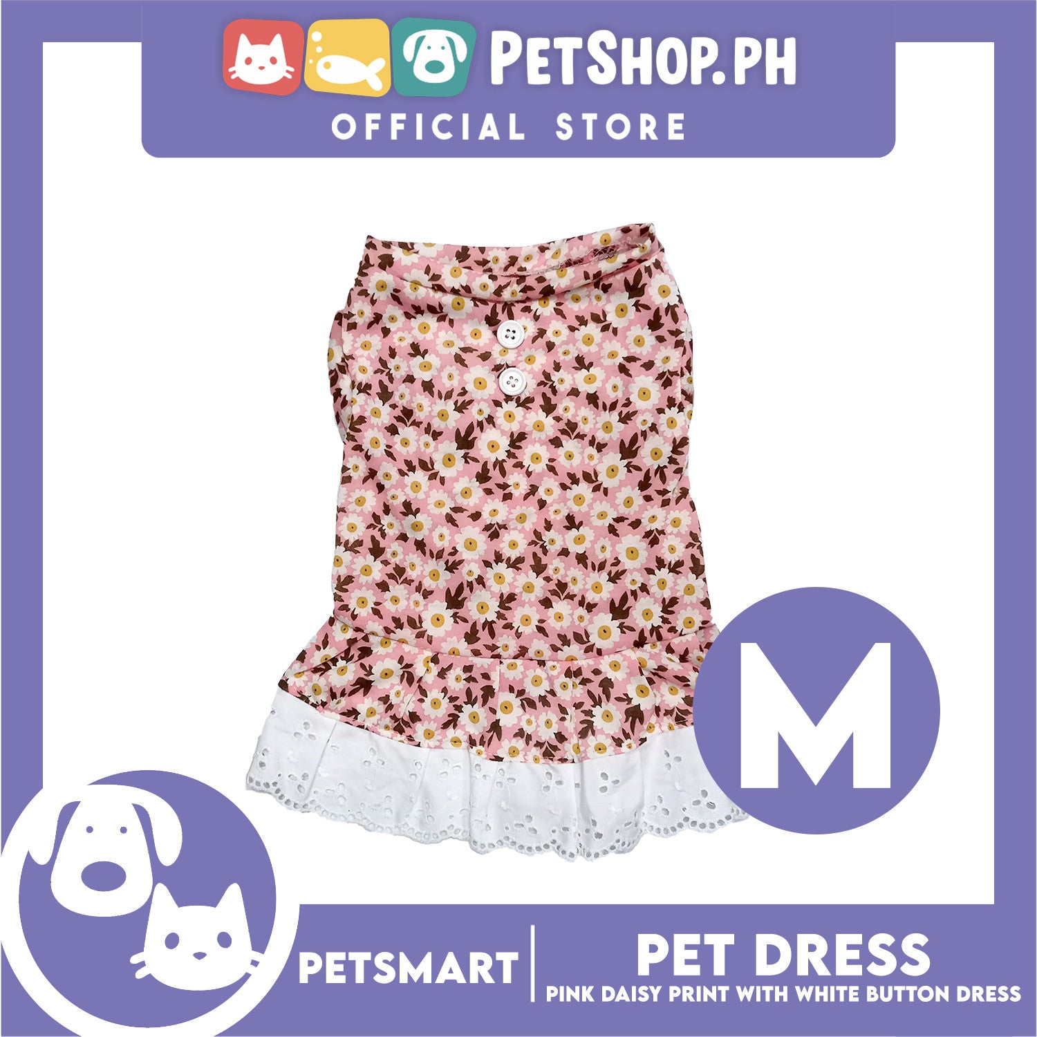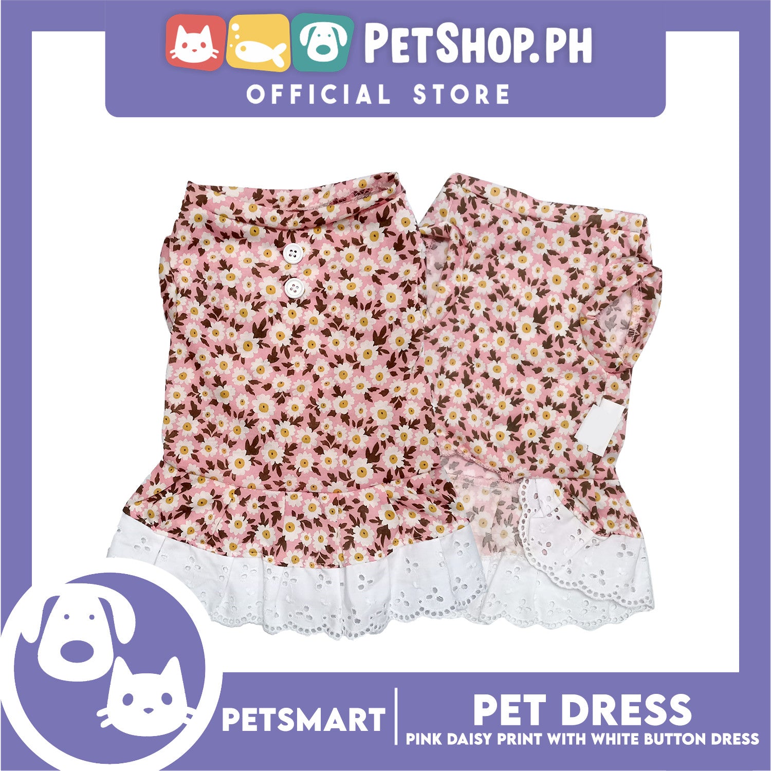 Pet Dress Pink Daisy Print with White Button Design DG-CTN186M (Medium)