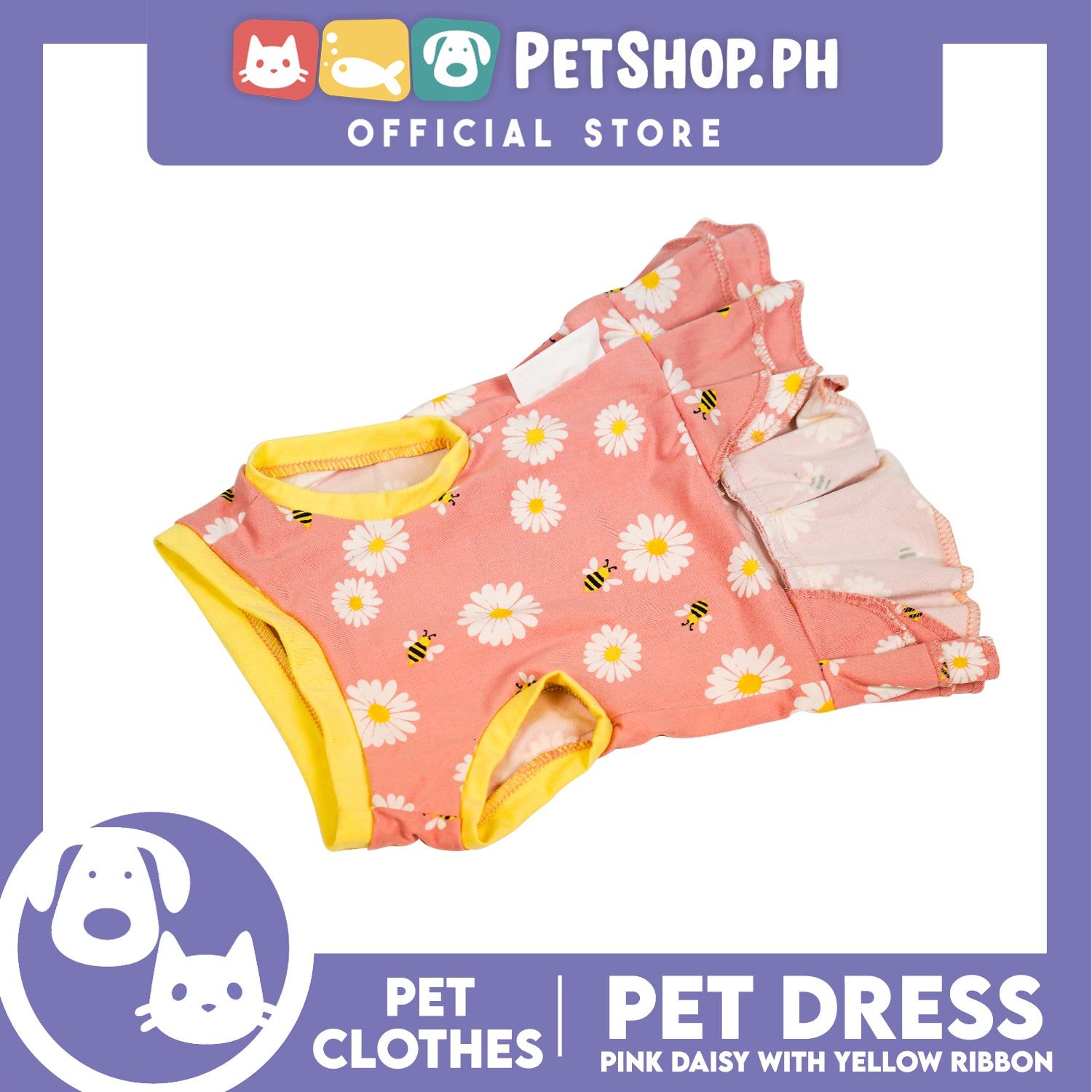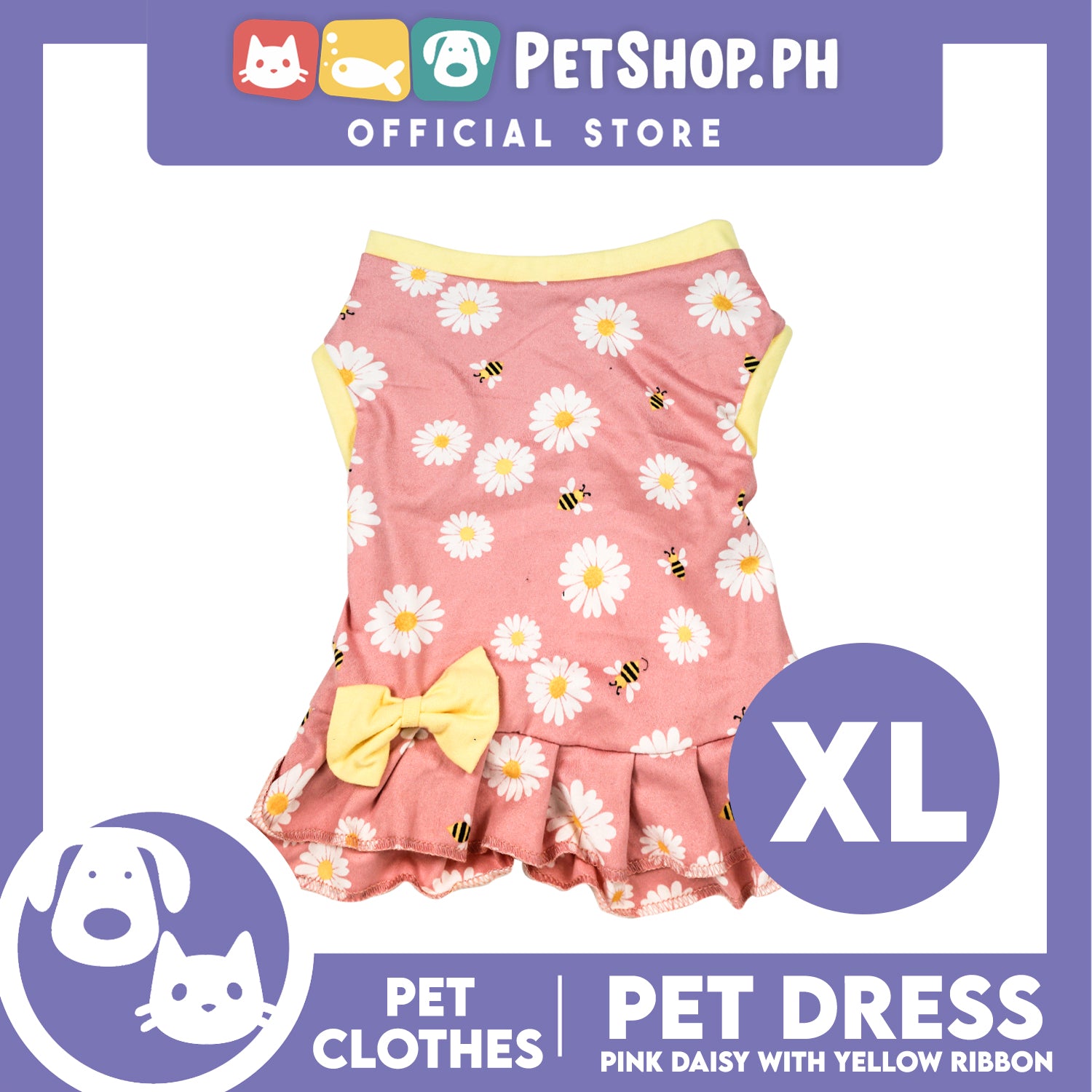 Pet Dress Pink Daisy with Yellow Ribbon Pet Clothes (Extra Large) Perfect Fit for Dogs and Cats