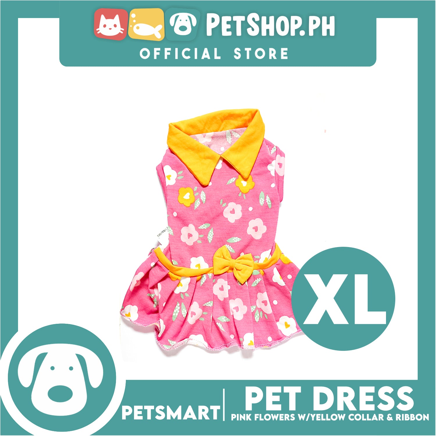 Pet Dress Pink Flowers With Yellow Collar And Ribbon Dress DG-CTN120XL (Extra Large) Perfect Fit For Dogs And Cats, Pet Dress Clothes, Soft and Comfortable Pet Clothing