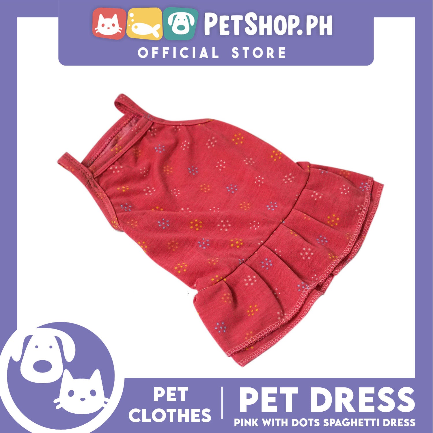 Pet Dress Pink with Dots (Large) Pet Clothes for Small Dog