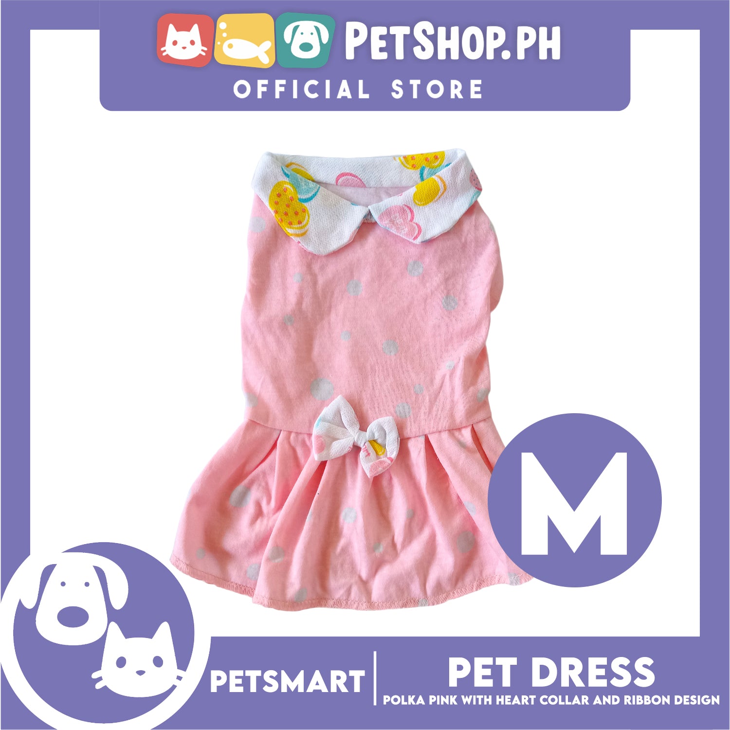 Pet Dress, Polka Pink with Heart Collar and Ribbon Design DG-CTN158M (Medium) Perfect Fit For Dogs And Cats, Pet Clothes, Soft and Comfortable Pet Clothing