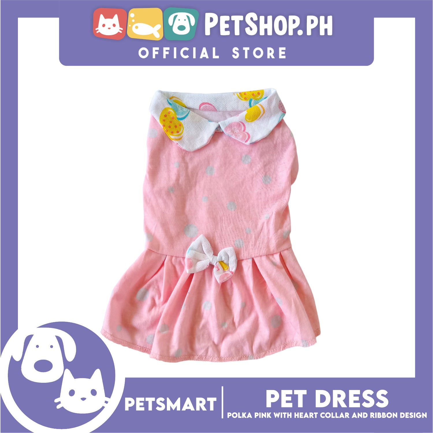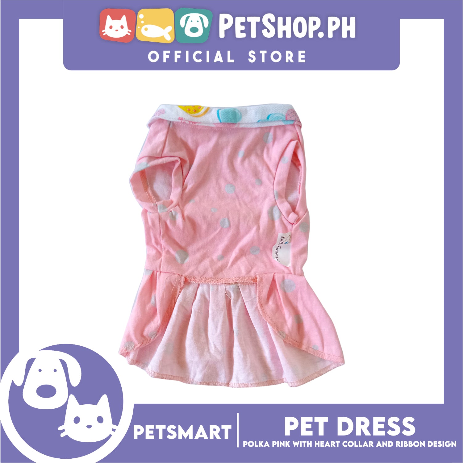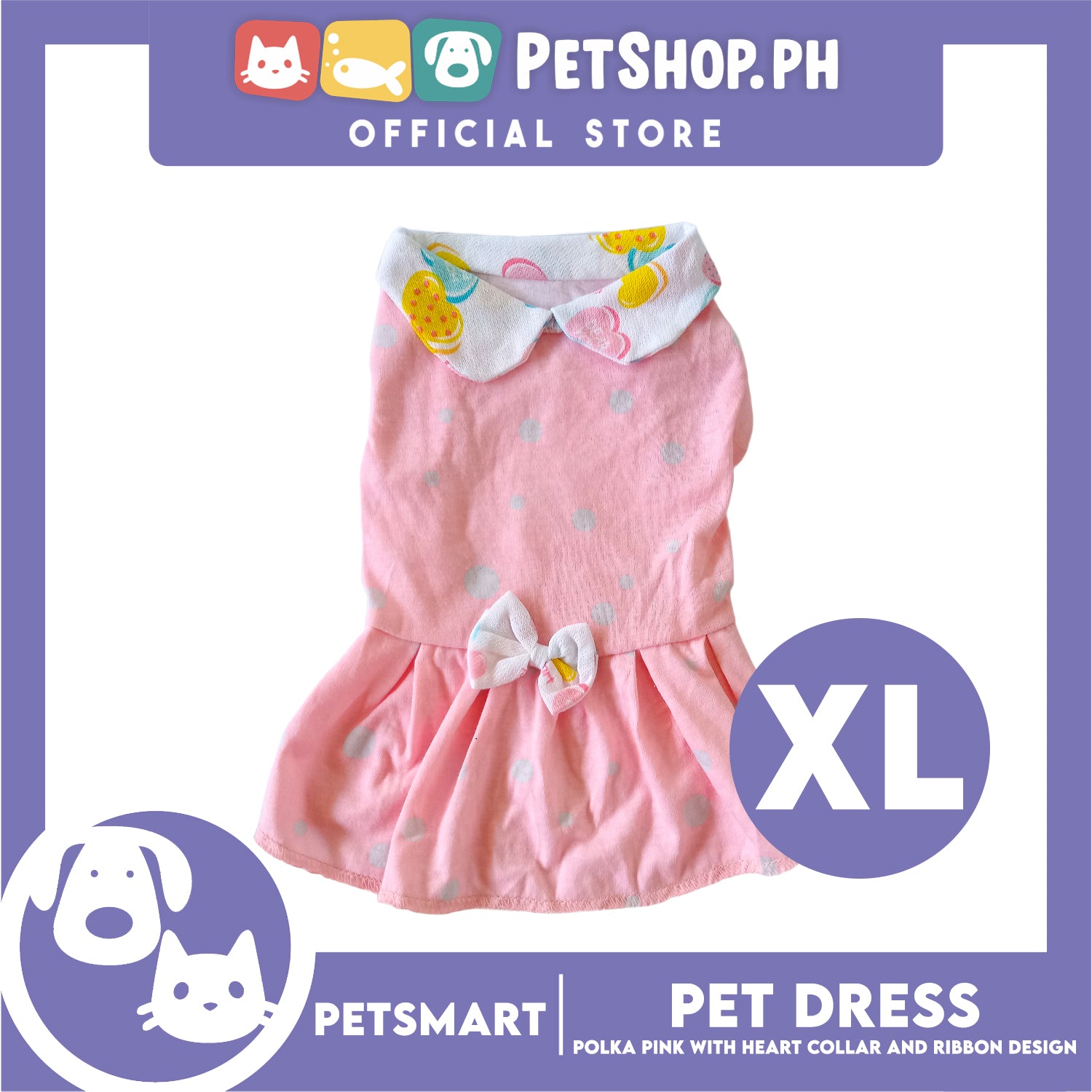 Pet Dress, Polka Pink with Heart Collar and Ribbon Design DG-CTN158XL (XL) Perfect Fit For Dogs And Cats, Pet Clothes, Soft and Comfortable Pet Clothing