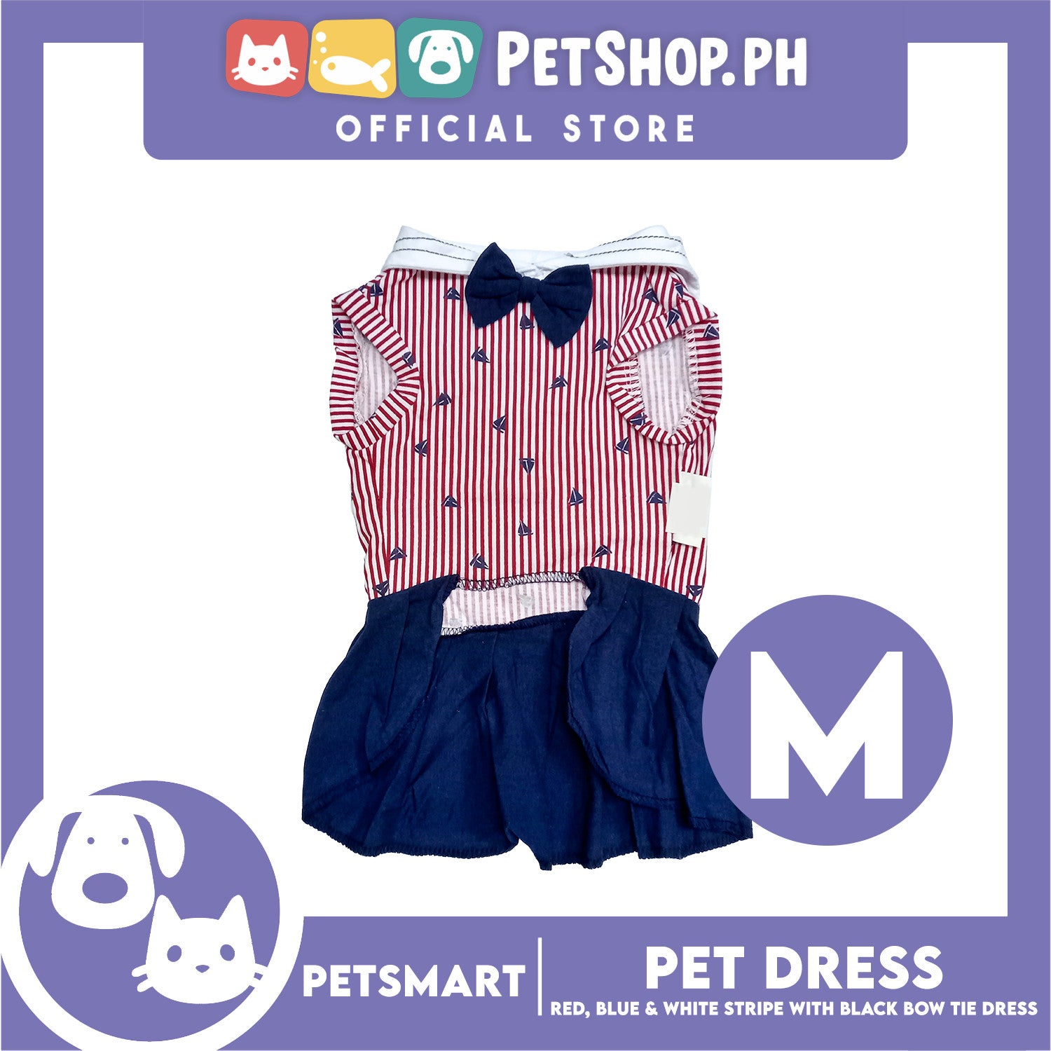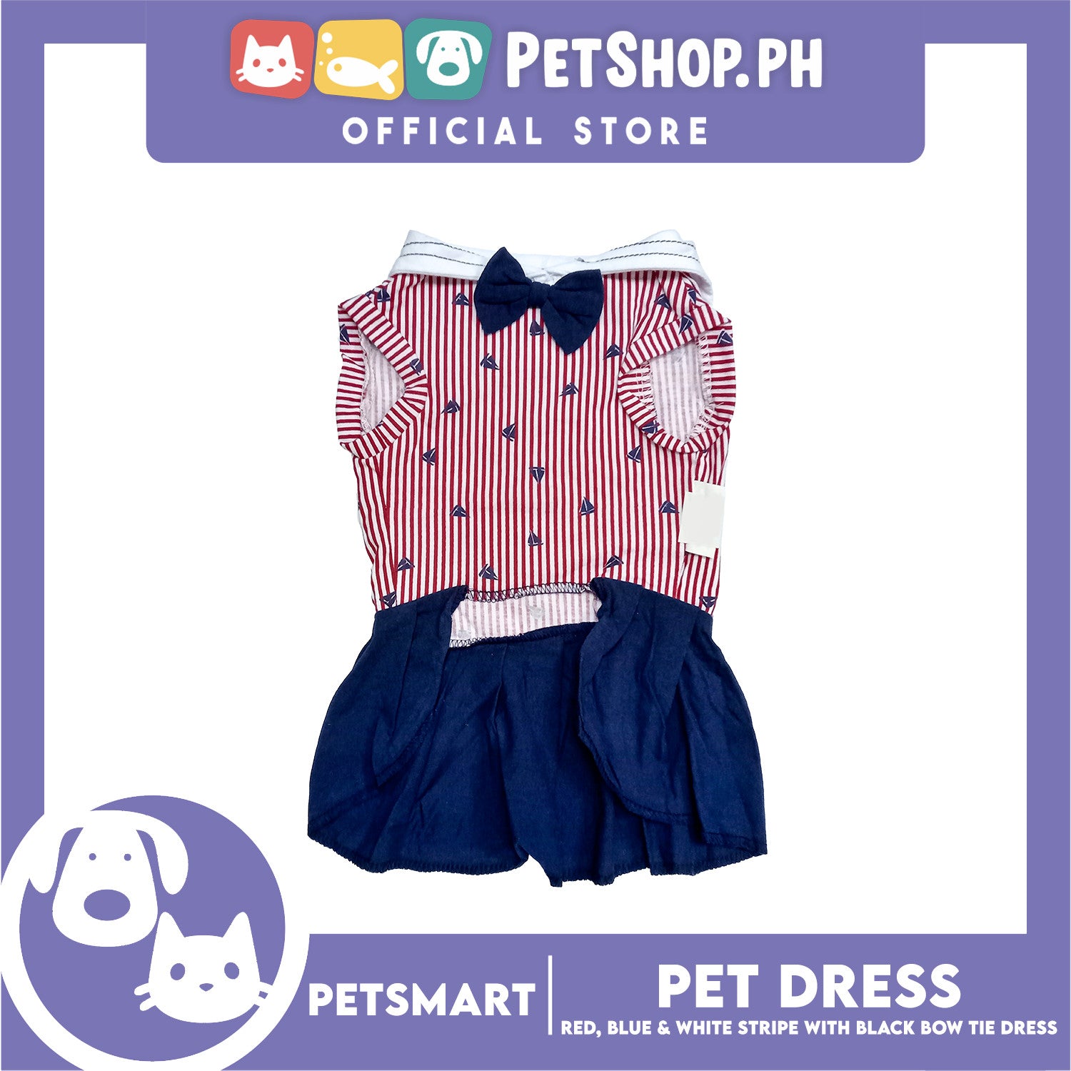 Pet Dress Red, Blue and White Stripe with Black Bow Tie Design DG-CTN184M (Medium)
