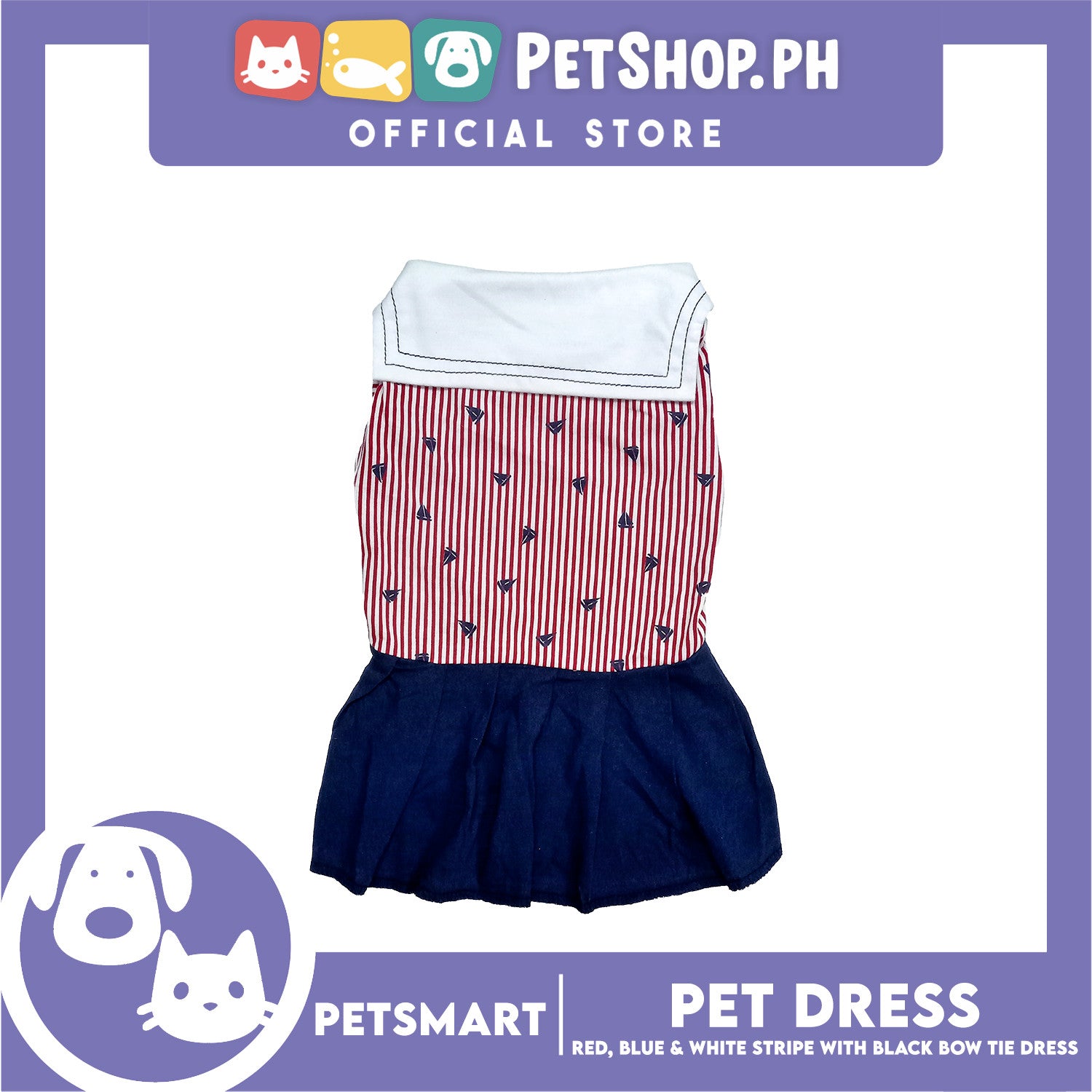Pet Dress Red, Blue and White Stripe with Black Bow Tie Design DG-CTN184S (Small)