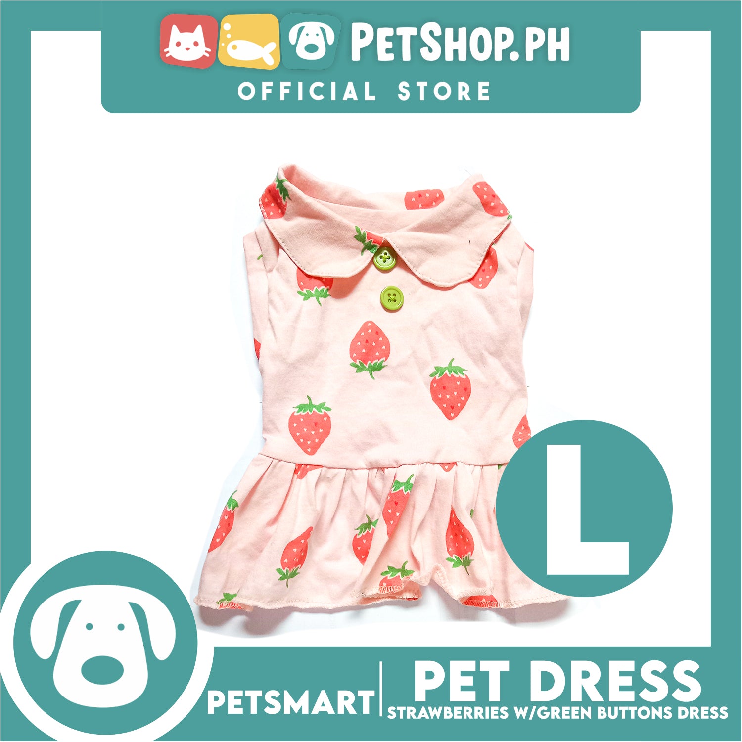 Pet Dress Strawberries With Green Buttons Dress DG-CTN121L (Large) Perfect Fit For Dogs And Cats, Pet Dress Clothes, Soft and Comfortable Pet Clothing