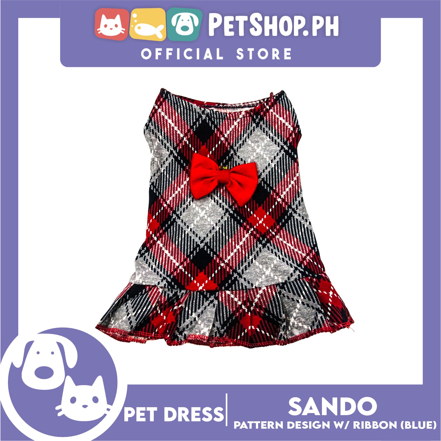 Pet Dress Summer Blue Checkered Skirt with Red Ribbon (Extra Large) for Small Dog and Cat