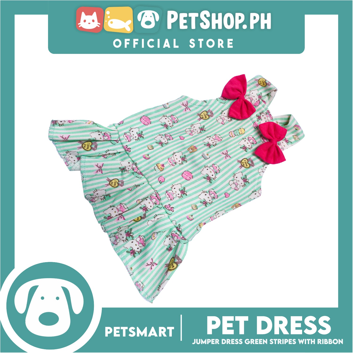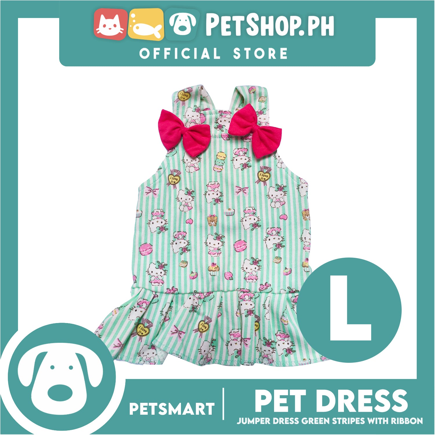 Pet Dress With Character Design, Green Stripes With Pink Ribbon (Large) Perfect Fit For Dogs And Cats, Breathable Dress, Soft Lightweight Pet Clothing