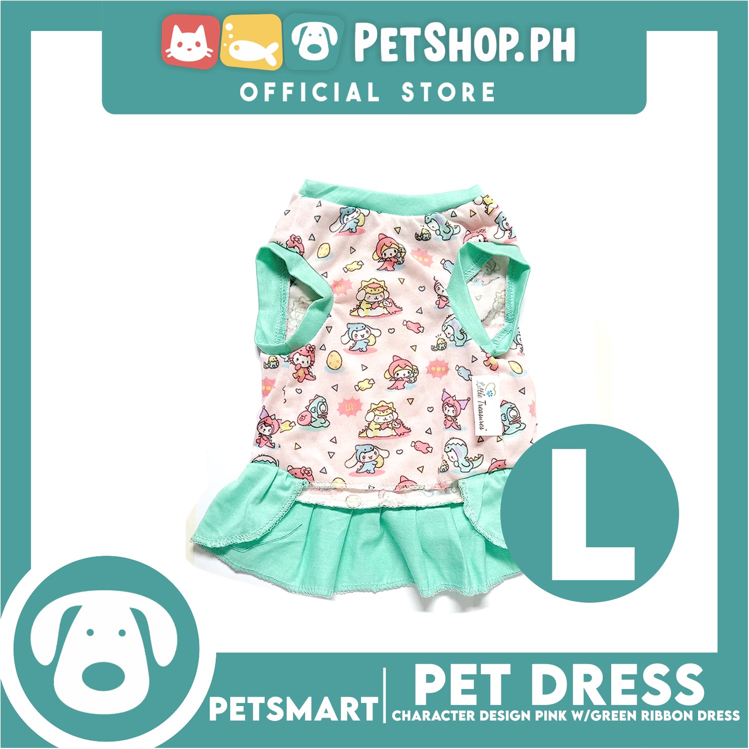 Pet Dress With Character Design Pink With Green Ribbon Dress DG-CTN119L (Large)