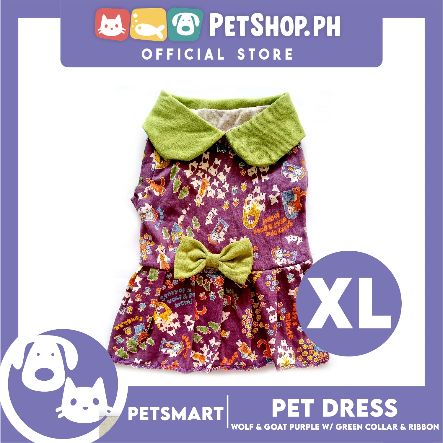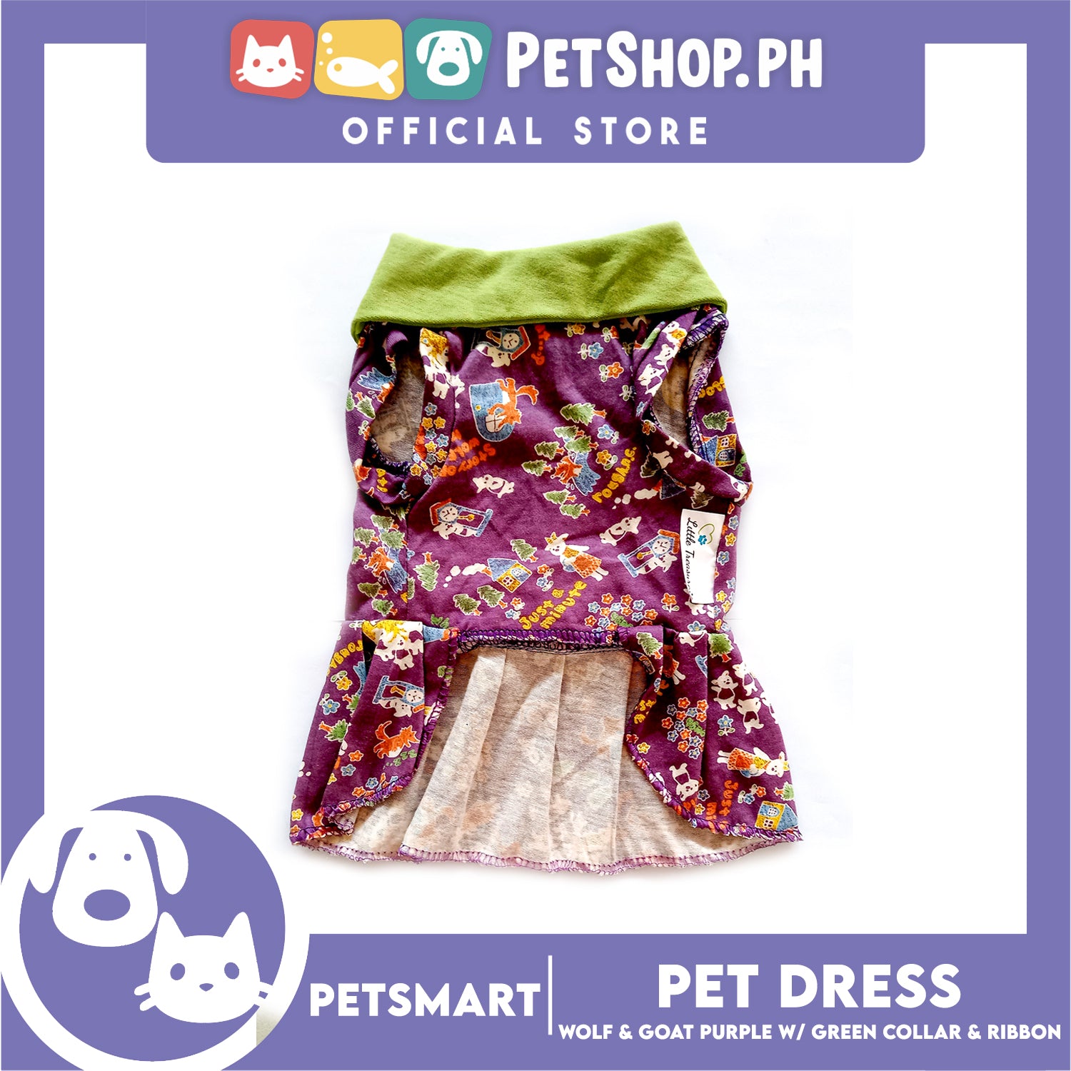 Pet Dress Wolf and Goat Design, Purple with Green Collar and Ribbon Color DG-CTN141XL (XL) Perfect Fit For Dogs And Cats