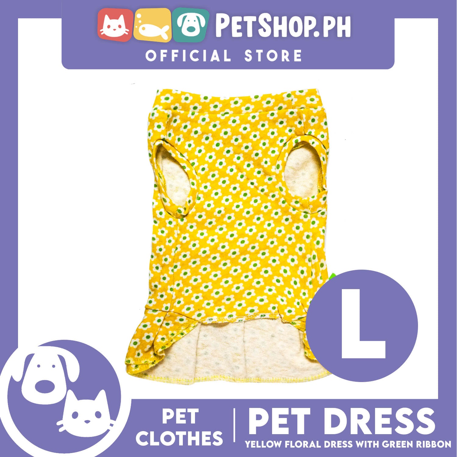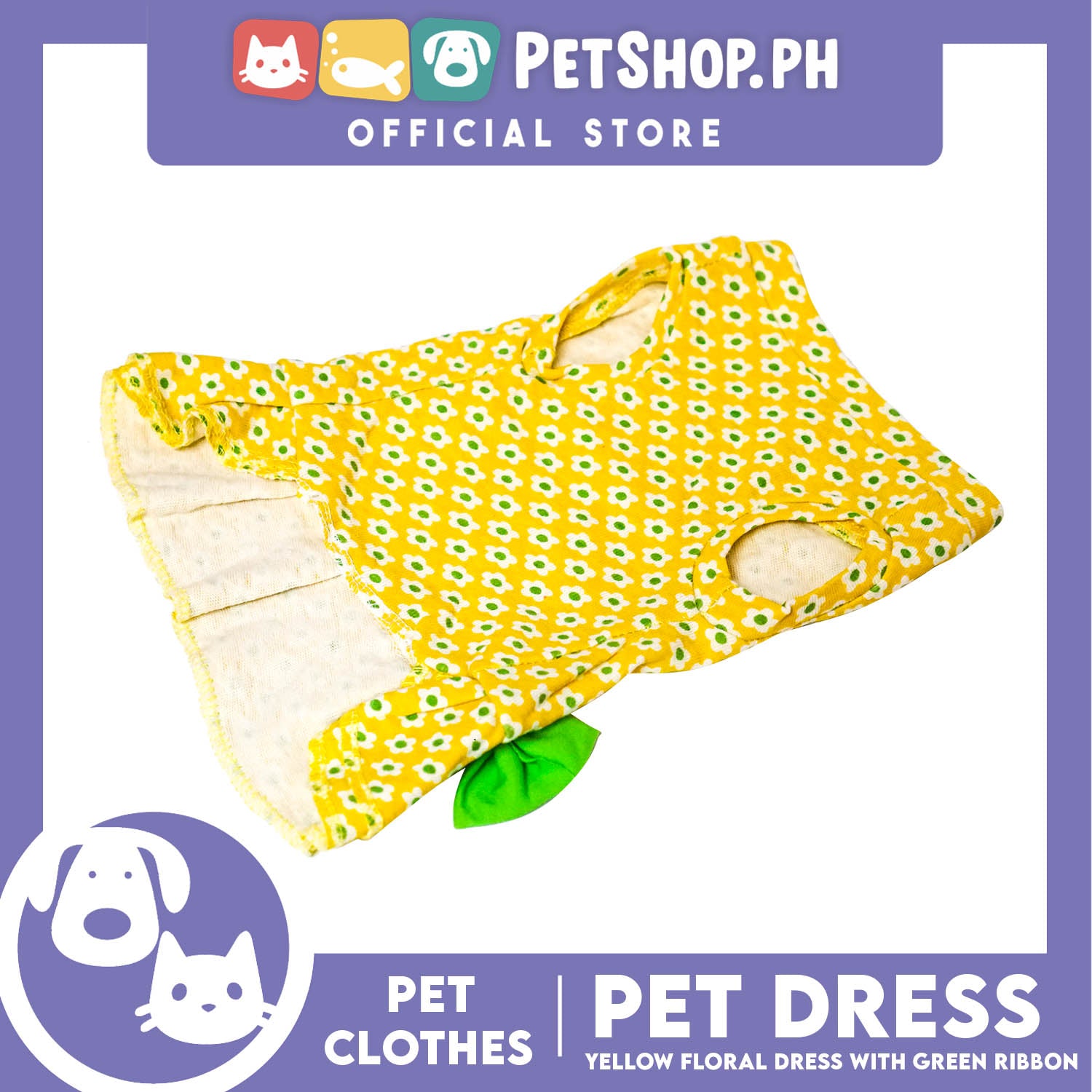Pet Dress Yellow Floral with Green Ribbon Design (Large) Pet Clothes Perfect Fit for Dogs
