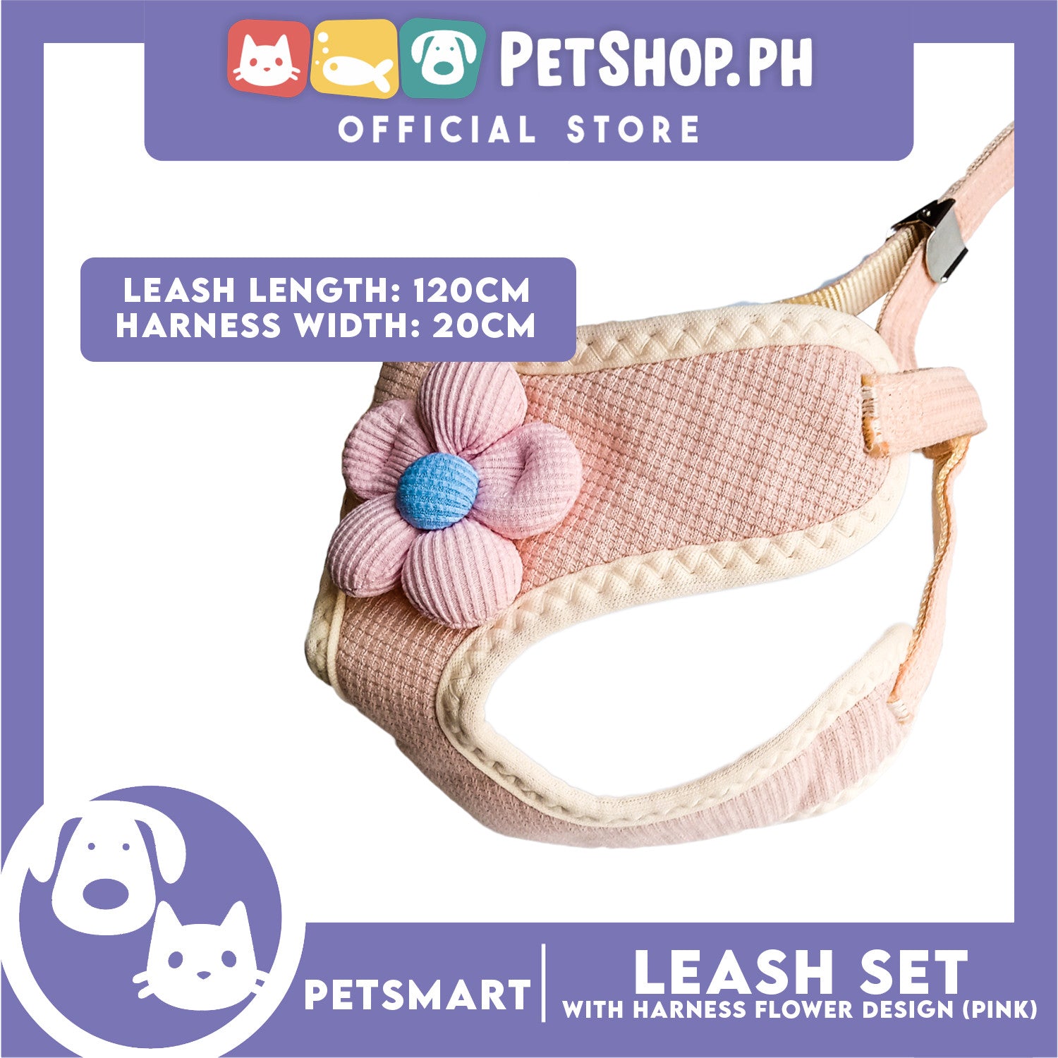 Pet Harness with Leash (Pink) Flower Design
