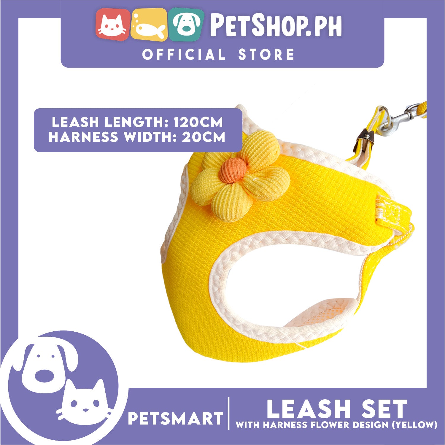 Pet Harness with Leash (Yellow) Flower Design