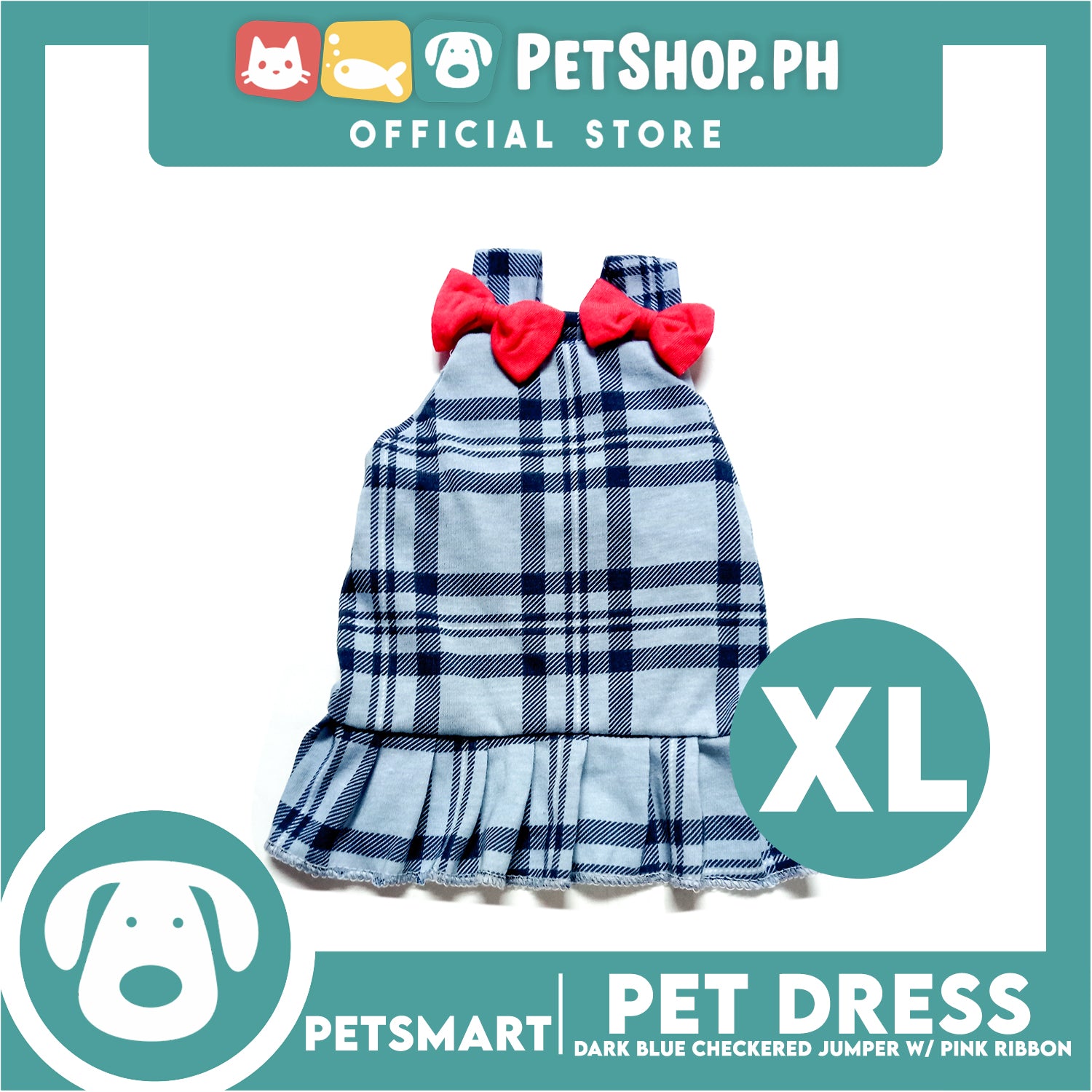 Pet Jumper Dress Dark Blue Checkered Jumper With Pink Ribbon DG-CTN123XL (Extra Large) Perfect Fit For Dogs And Cats, Pet Dress Clothes, Soft and Comfortable Pet Clothing