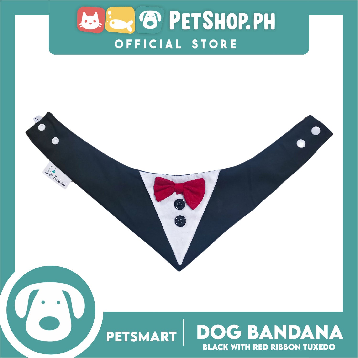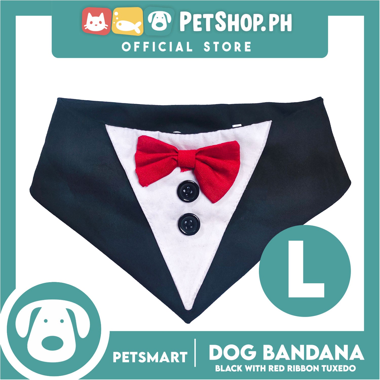 Pet Necktie Bandana Collar Scarf Black Tuxedo With Red Bow Tie Design DB-CTN29L (Large) Perfect Fit For Dogs And Cats, Breathable, Soft Lightweight Pet Bandana Scarf