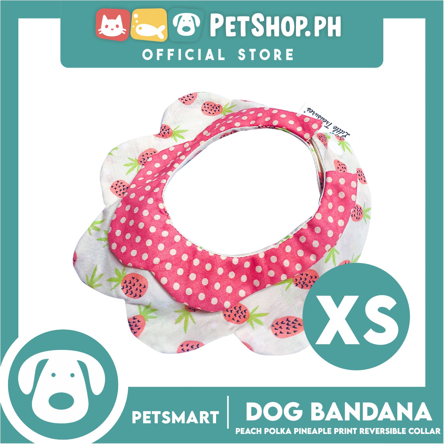 Pet Necktie Bandana Collar Scarf Peach Polka Dots Pineapple Design DB-CTN30XS (XS) Perfect Fit For Dogs And Cats, Breathable, Soft Lightweight Pet Bandana Collar Scarf