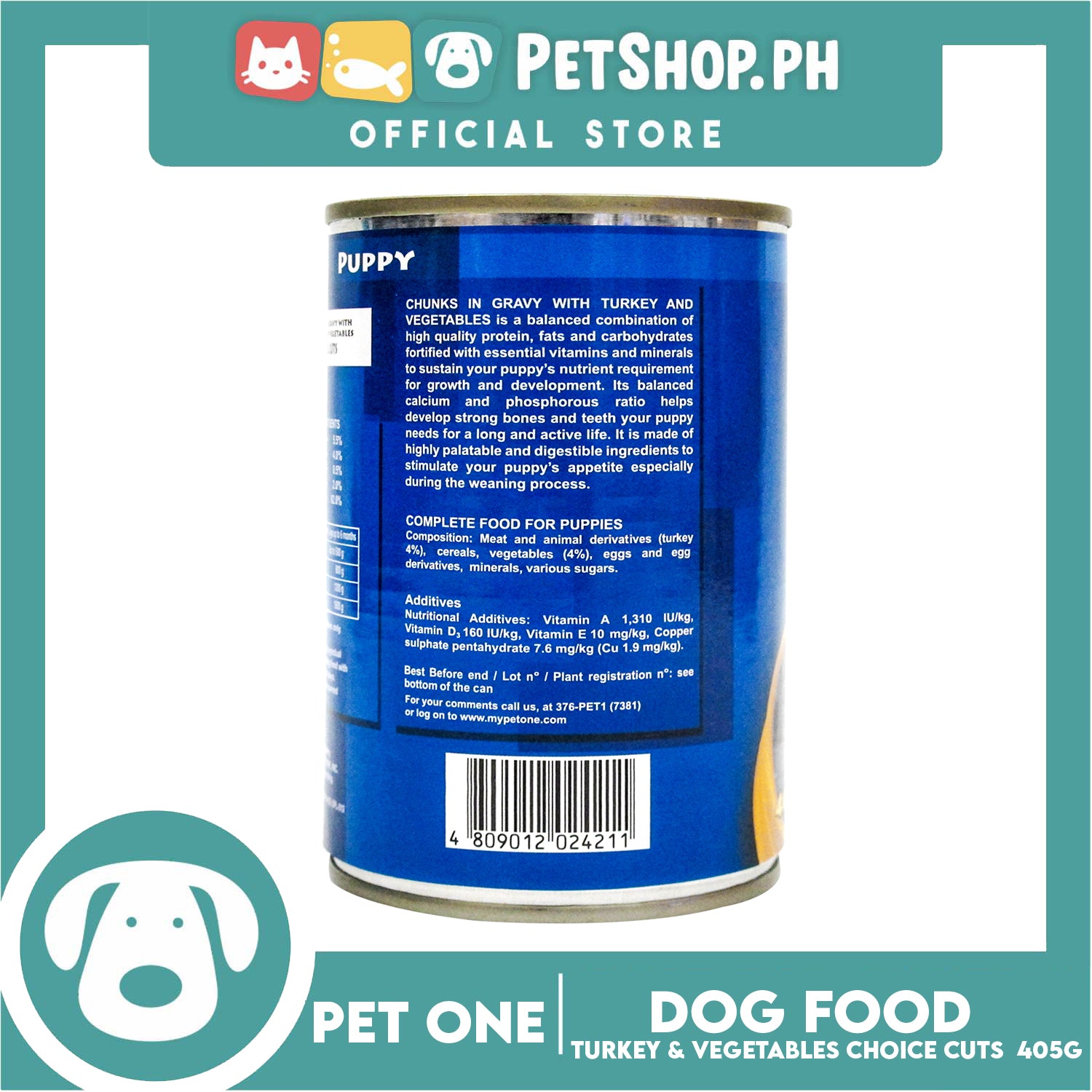 Pet One Puppy Wet Canned Dog Food 405g (Chunks In Gravy With Turkey And Vegetable Choice Cuts)