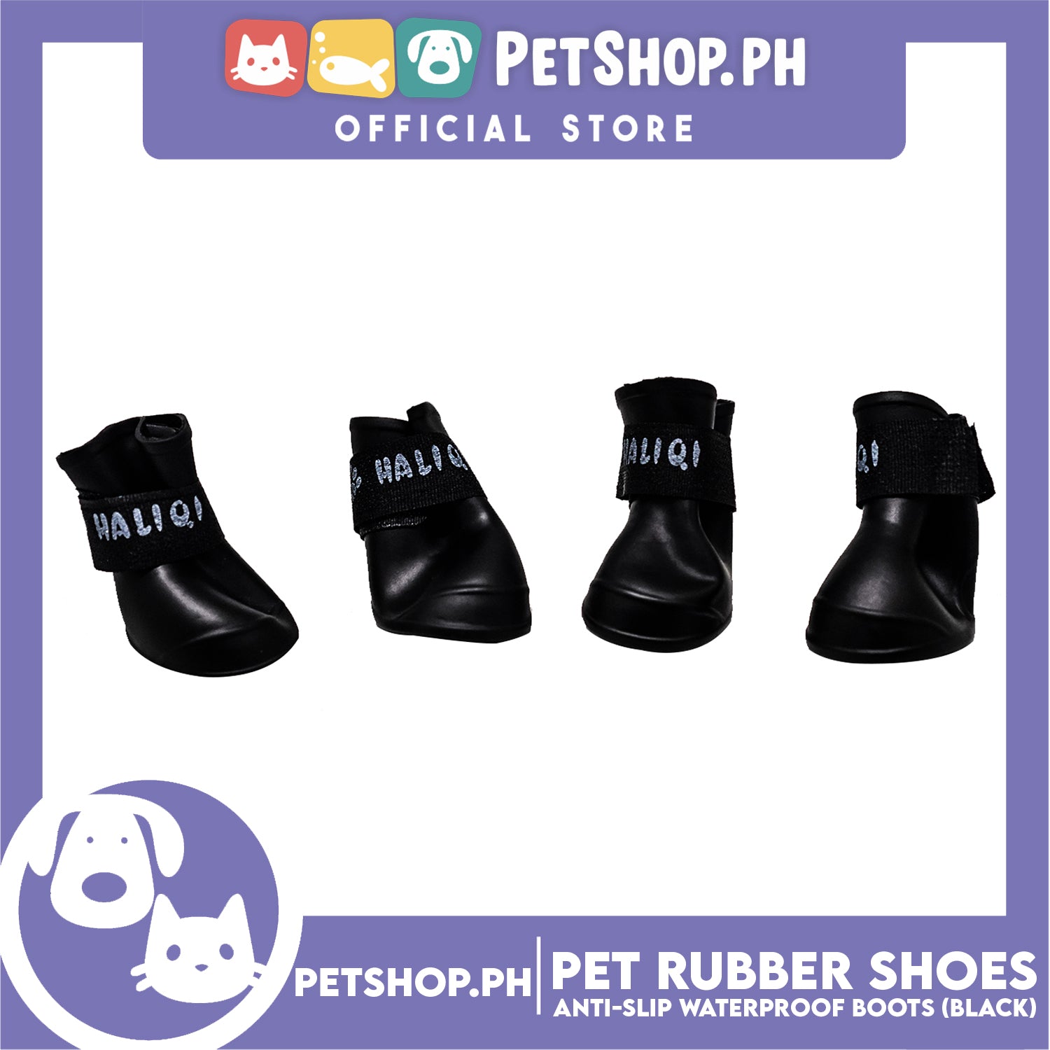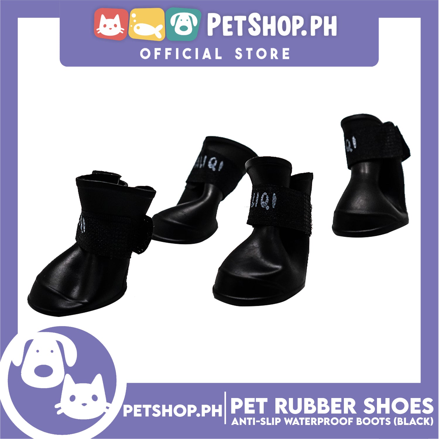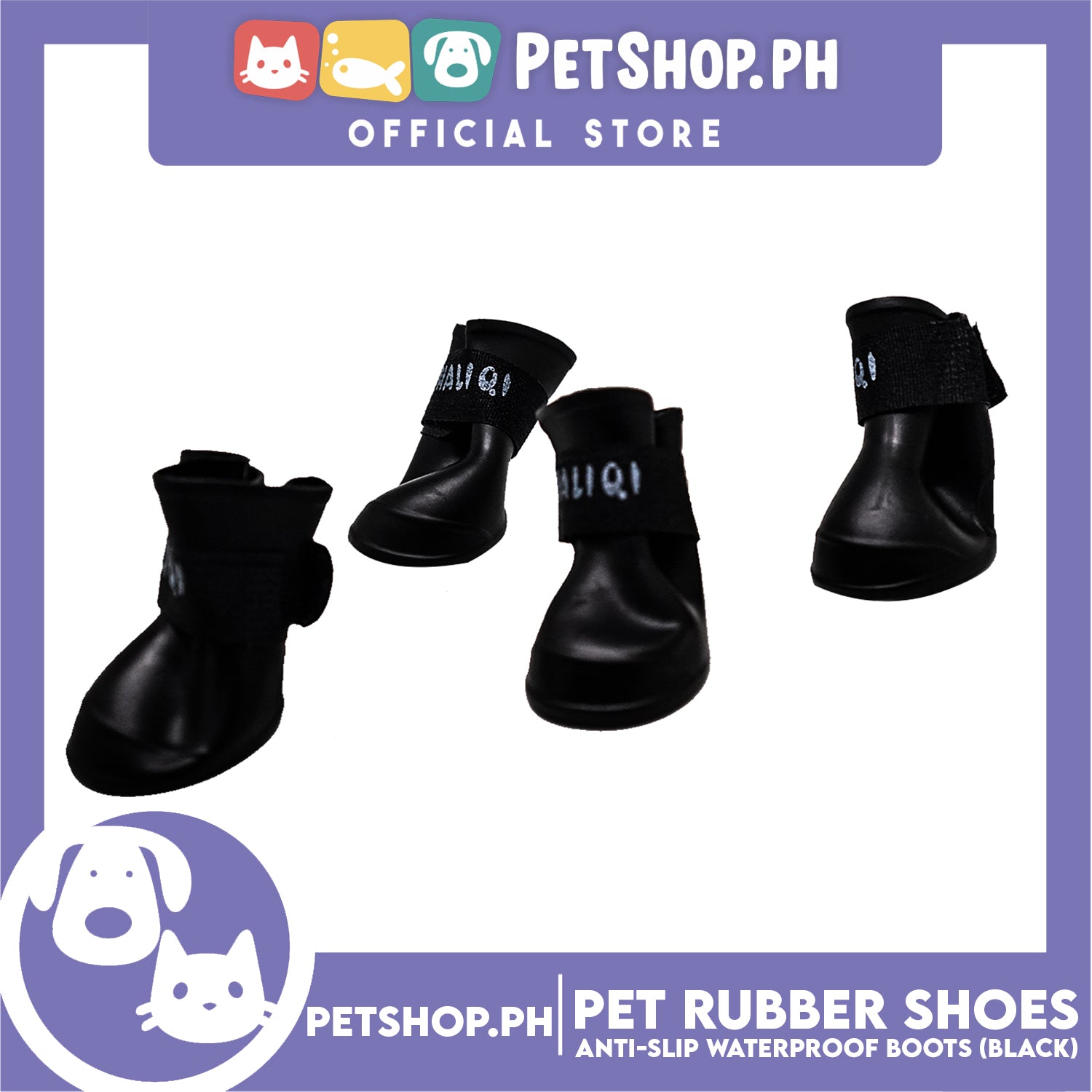 Pet Rubber Rain Shoes Anti-Slip Waterproof Rubber Boots with Paws Cover P6711 - Rubber Boots (Black)