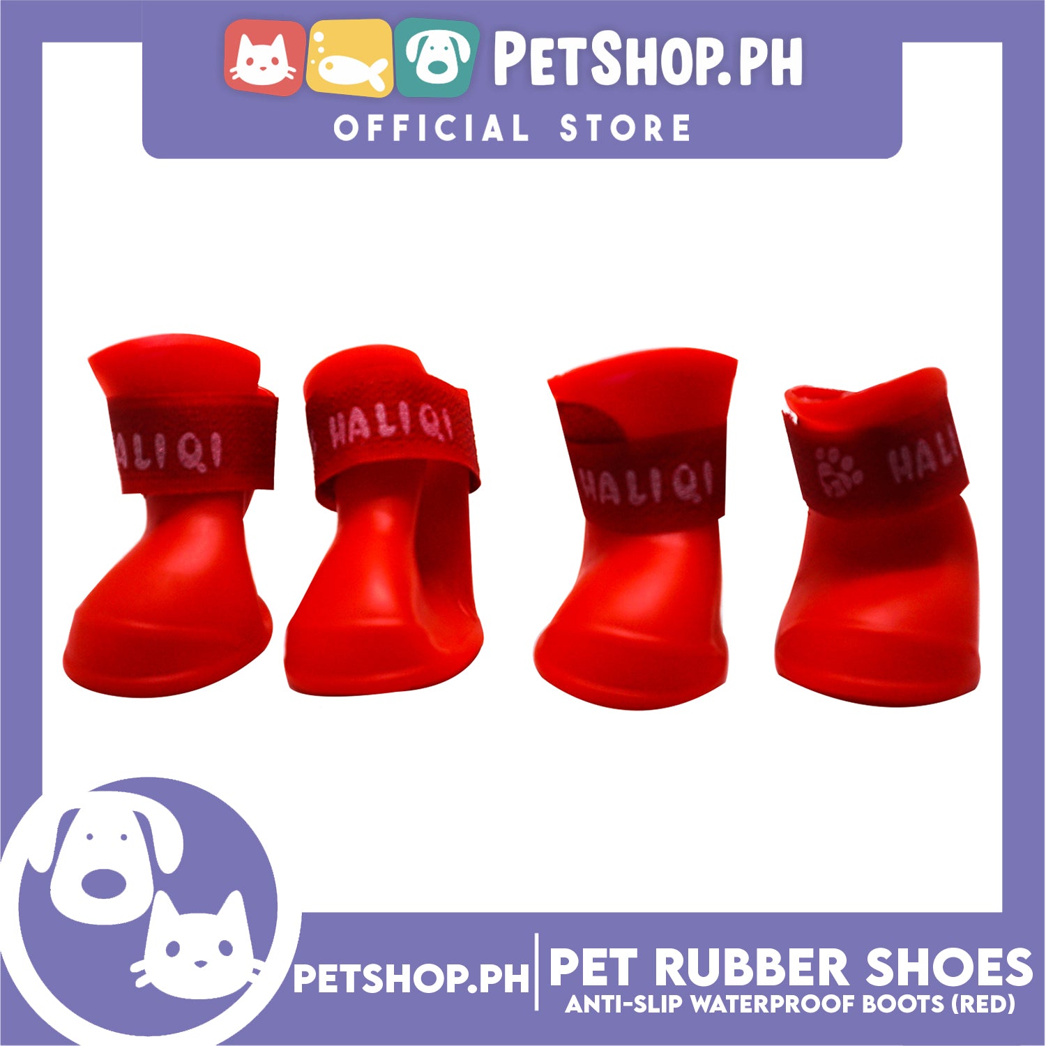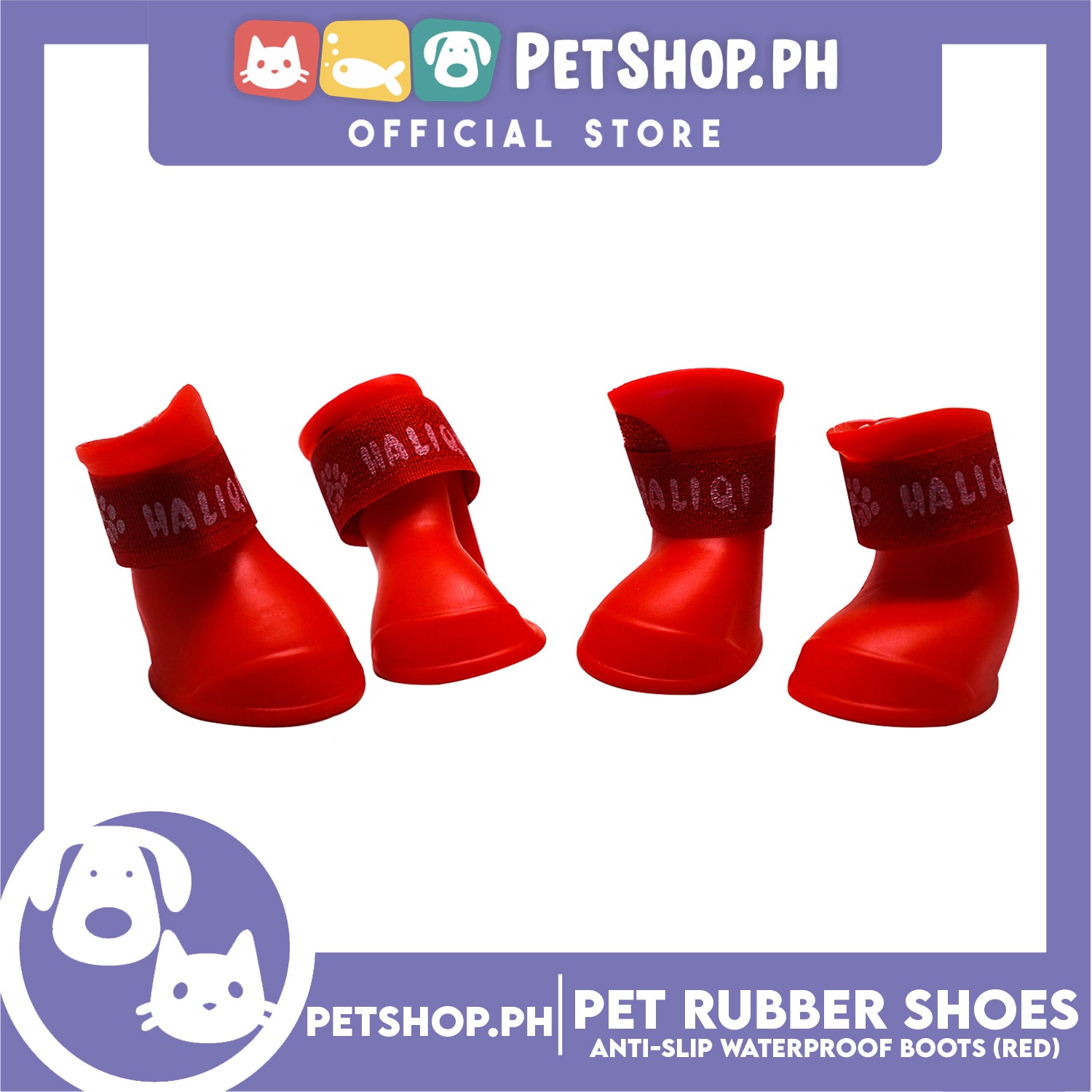Pet Rubber Rain Shoes Anti-Slip Waterproof Rubber Boots with Paws Cover P6711 - Rubber Boots (Red)