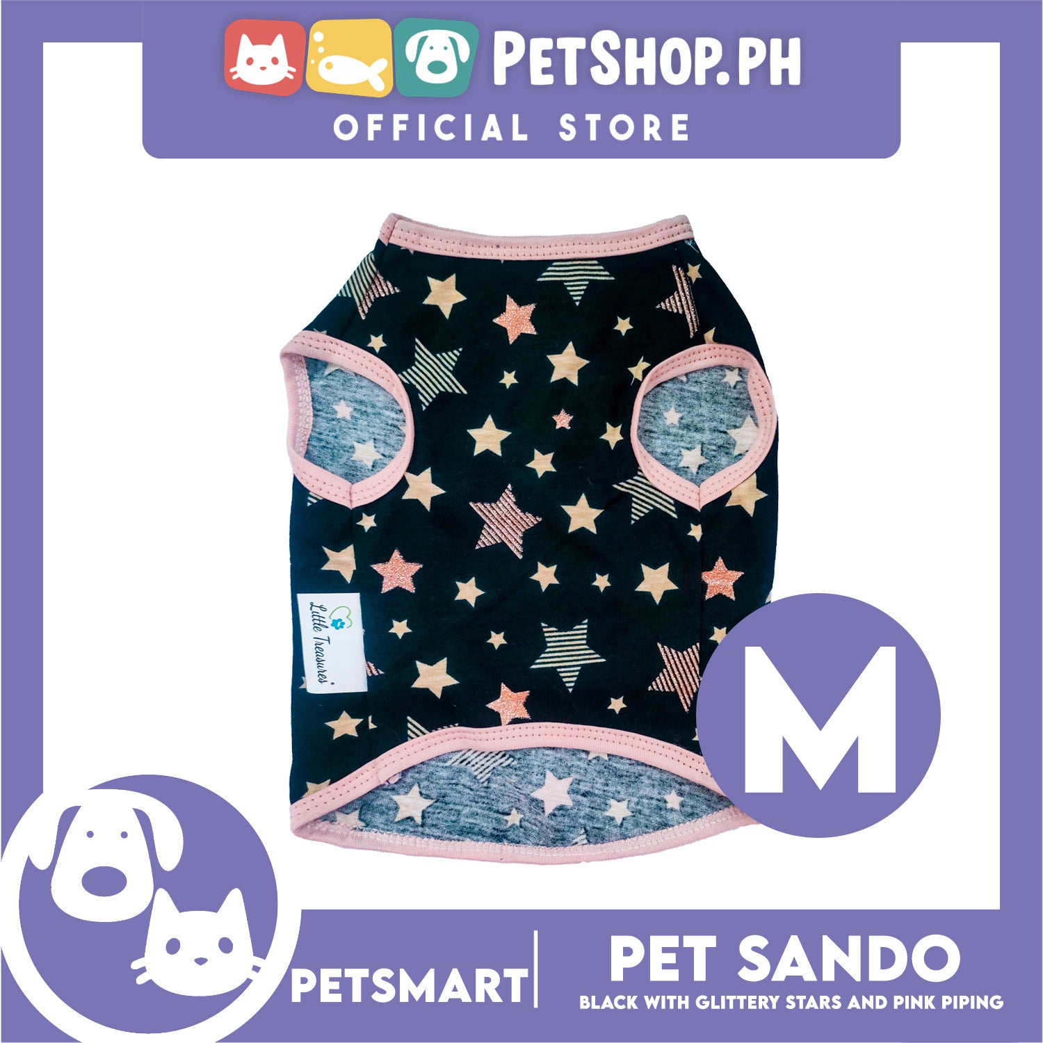 Pet Sando Black with Glittery Stars and Pink Piping Color DG-CTN147M (Medium) Perfect Fit For Dogs And Cats