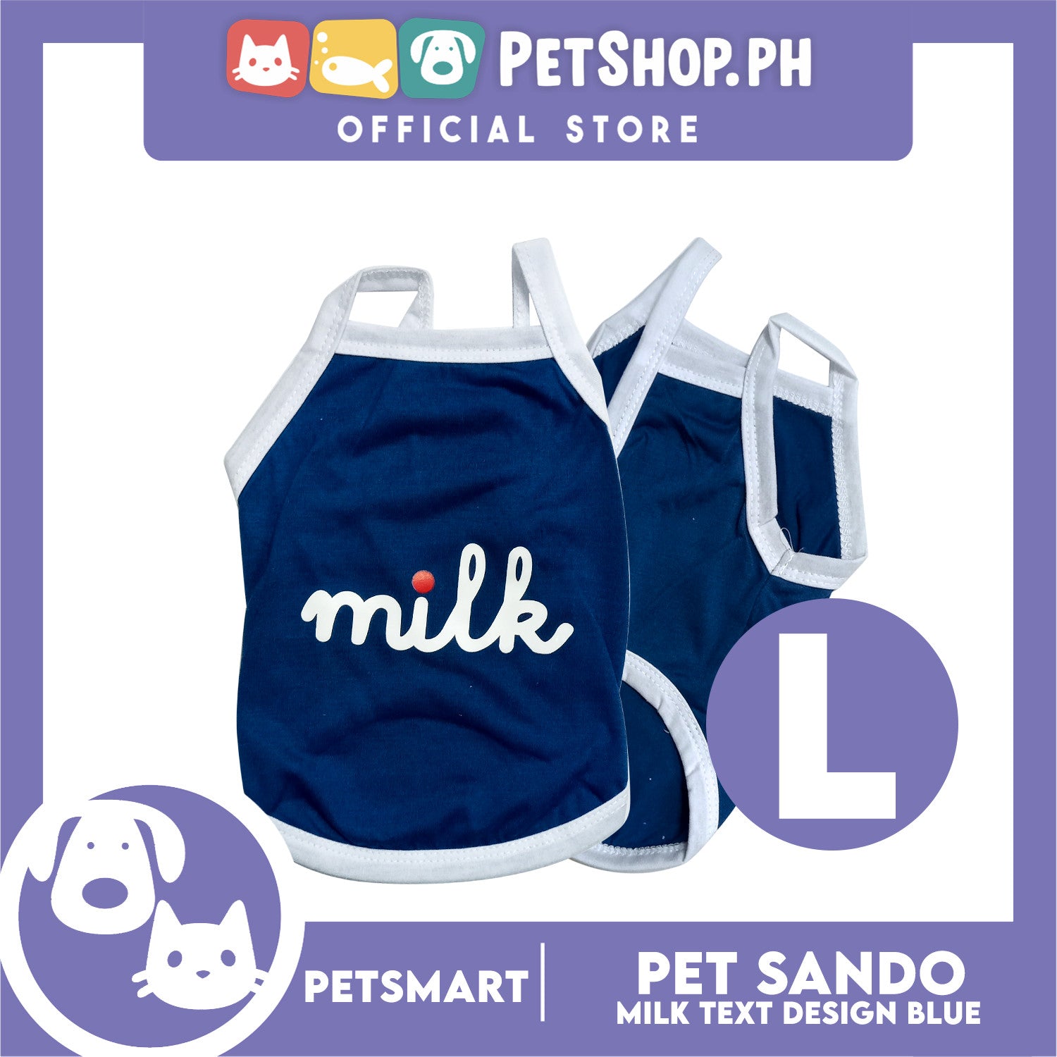 Pet Sando Blue Milk Text Print Large Size (CWYF1915) for cats and dogs