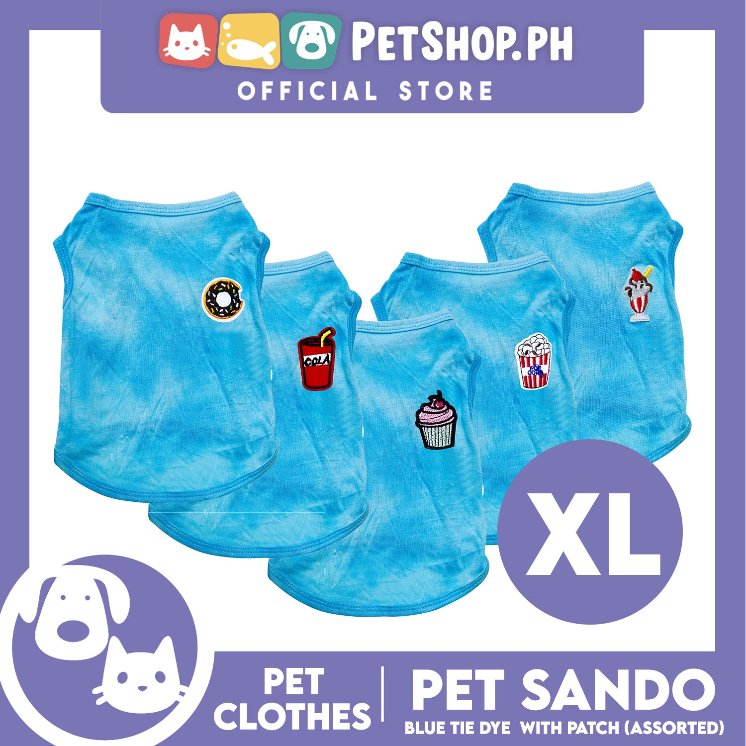 Pet Sando Blue Tie Dye with Assorted Patch Design (Extra Large) Pet Shirt Clothes Perfect for Dogs