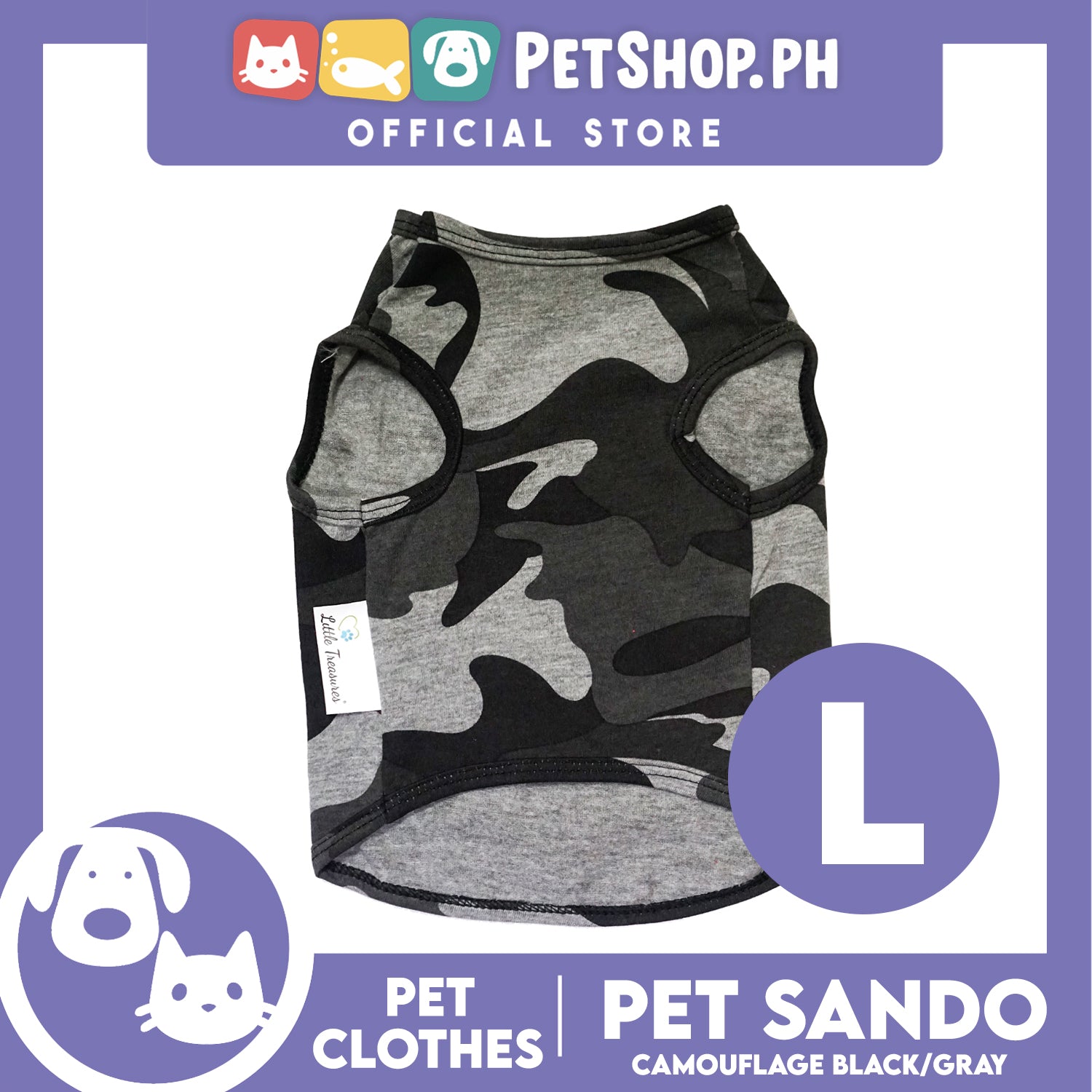 Pet Sando Camouflage Black/Gray (Large) Pet Shirt Clothes Dress Perfect fit for Dogs