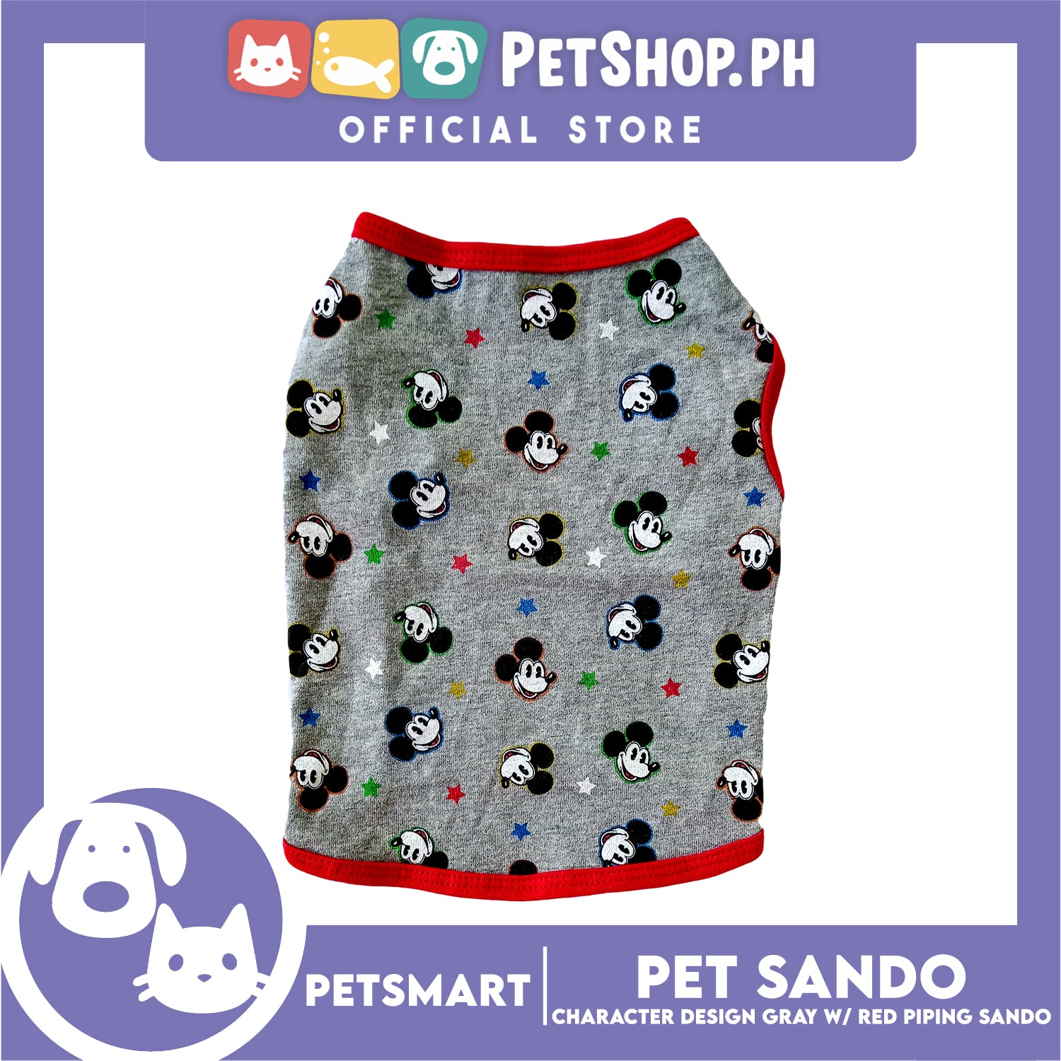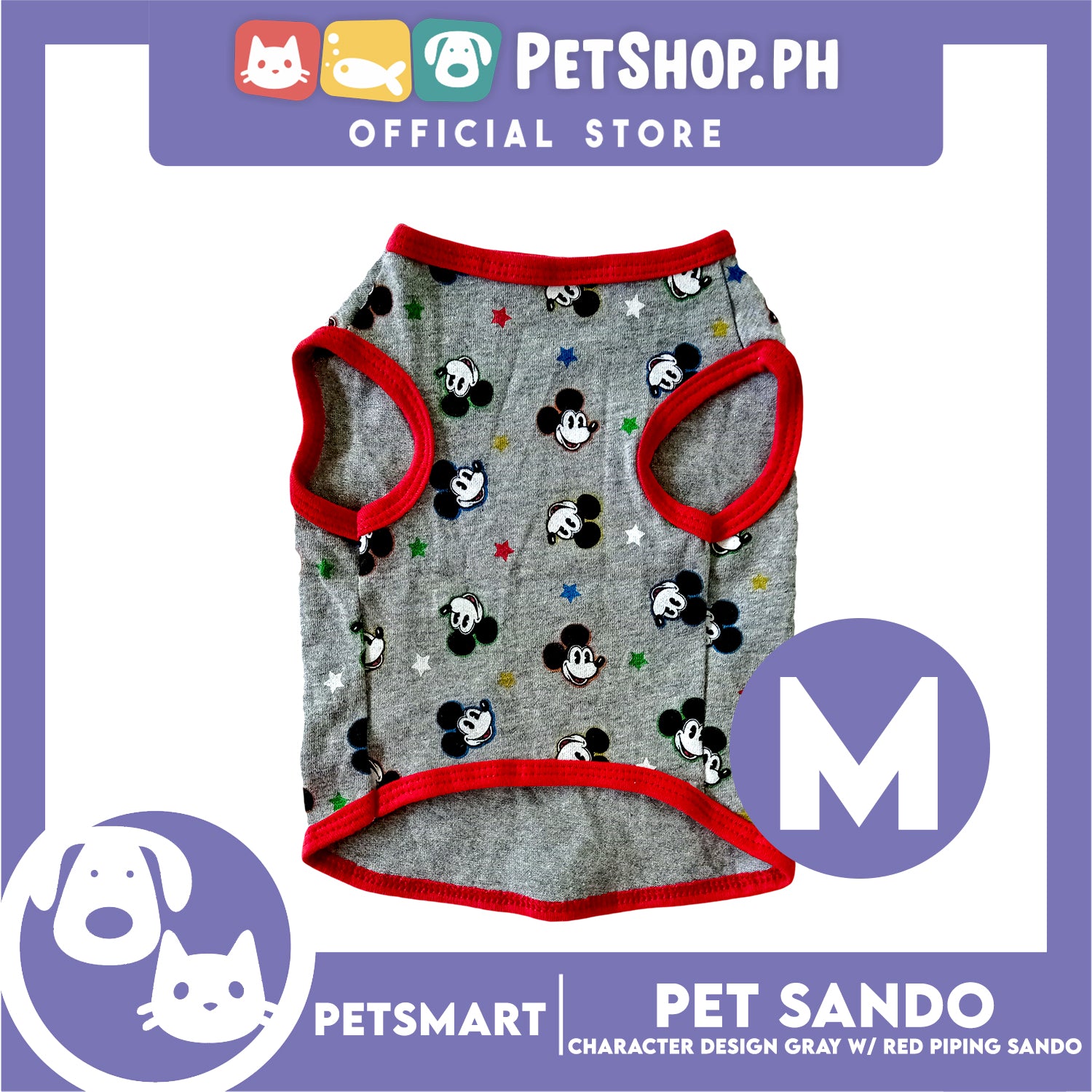 Pet Sando, Character Design Gray with Red Piping Sando DG-CTN156M (Medium) Perfect Fit For Dogs And Cats, Pet Clothes, Soft and Comfortable Pet Clothing