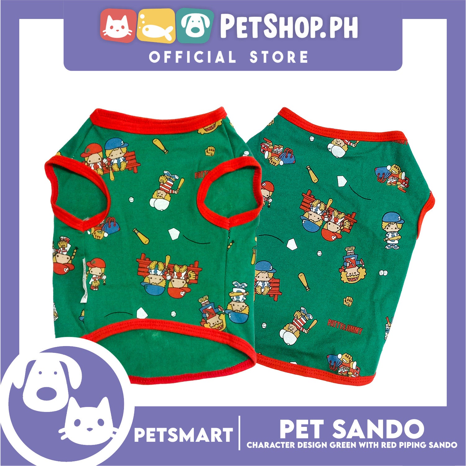 Pet Sando Character Design, Green with Red Piping Color, Small Size (DG-CTN199S)