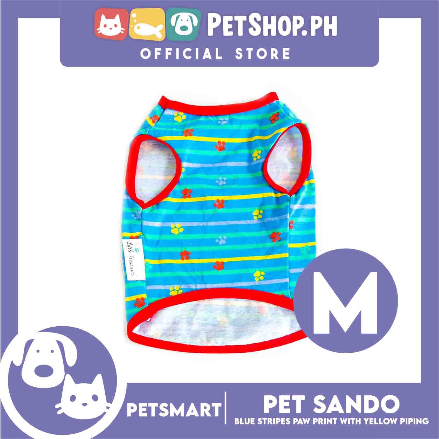 Pet Sando Clothes, Blue Stripes Paw Print With Yellow Piping DG-CTN130M (Medium)