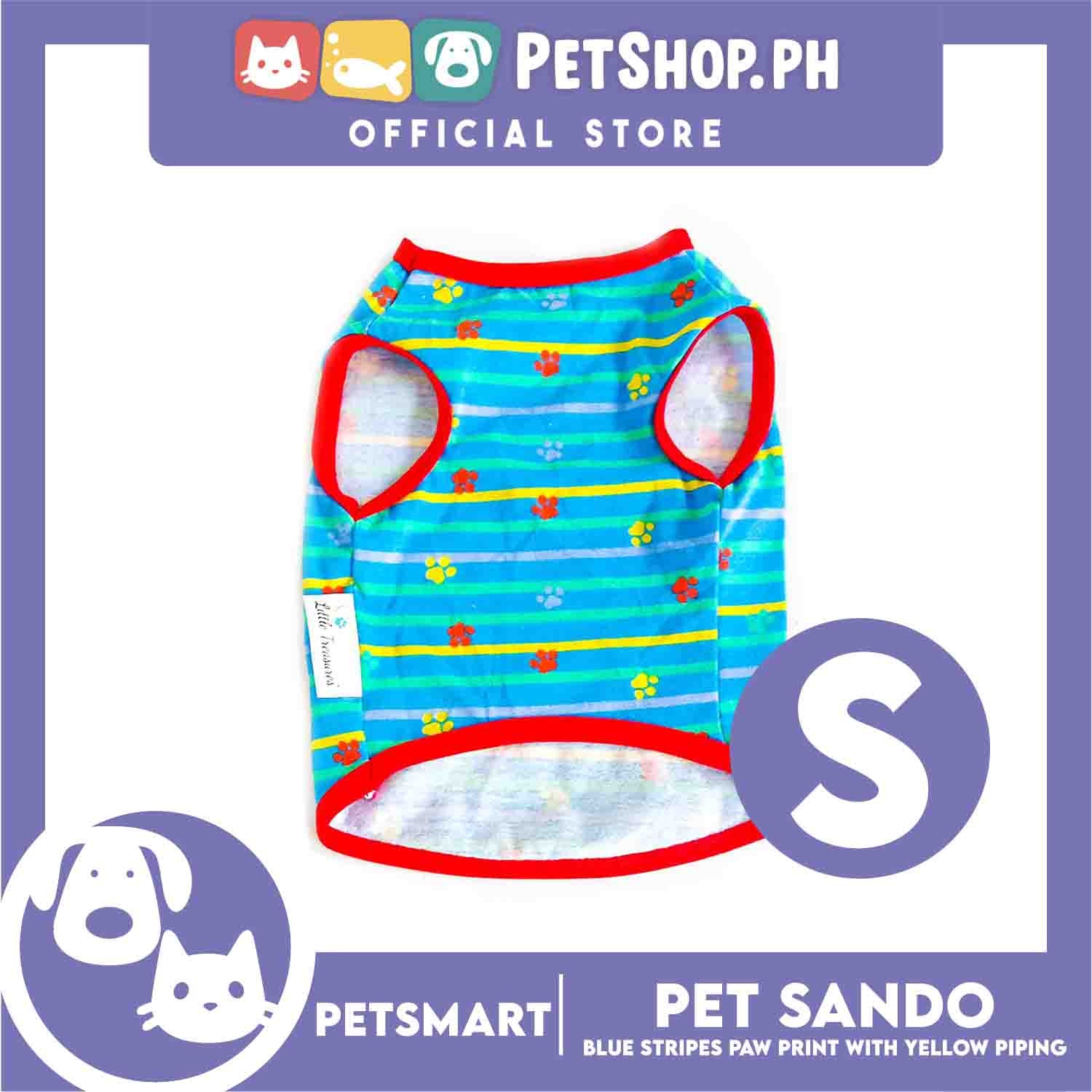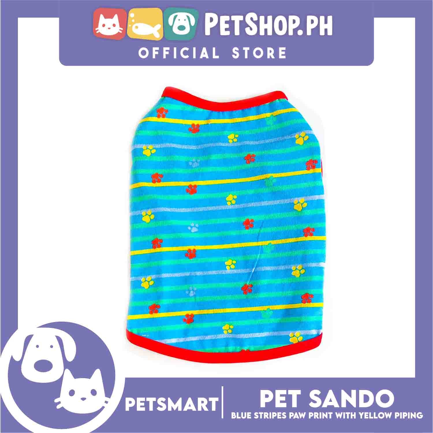 Pet Sando Clothes, Blue Stripes Paw Print With Yellow Piping DG-CTN130S (Small)